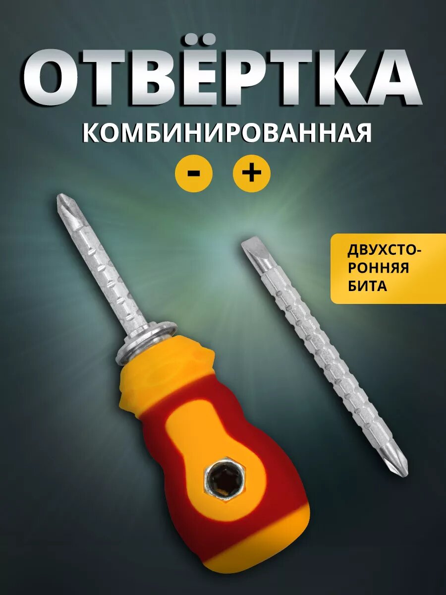 Отвертка двухсторонняя универсальная 11см, цвет красный-желтый интересное: