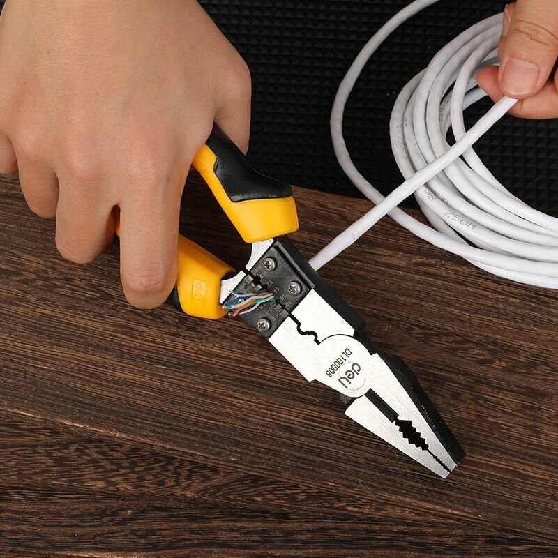 Многофункциональные удлиненные плоскогубцы Deli DL101008 220мм (скручивание/зачистка/обжим), сталь Cr-V