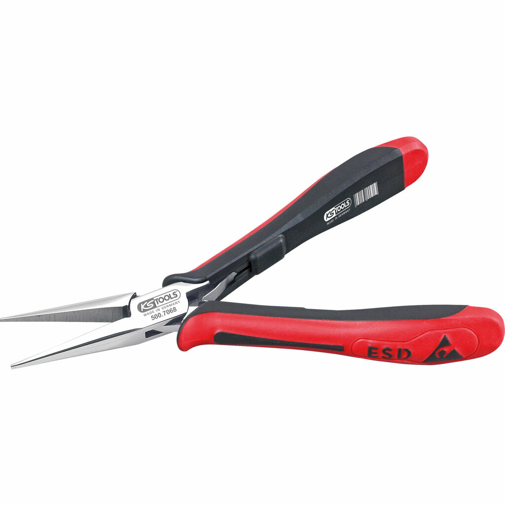 Купить Длинногубцы прецизионные с защитой от электростатических разрядов, прямые с насечкой, 140 мм KS Tools