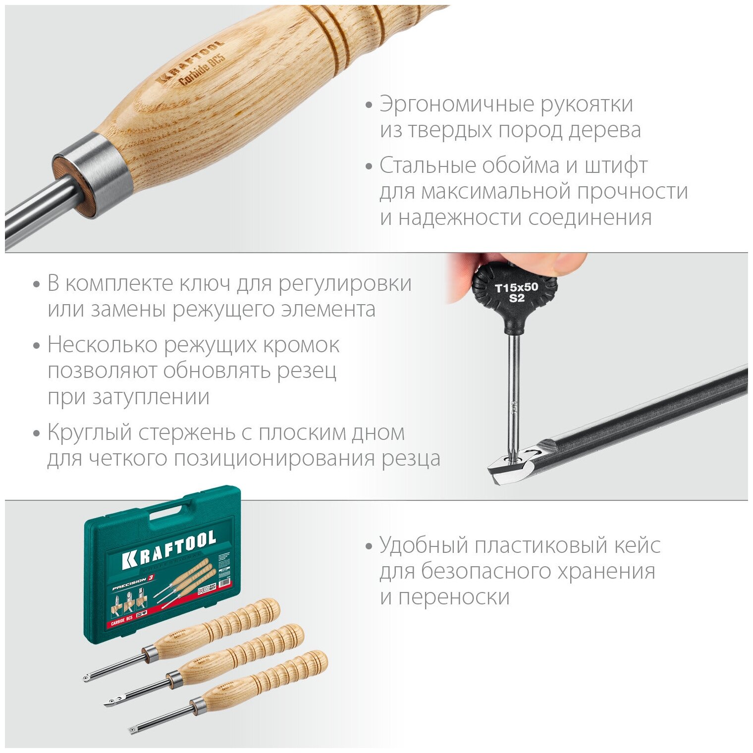KRAFTOOL Precision-3, 3 предм., набор ручных резцов по дереву (18369) интересное: