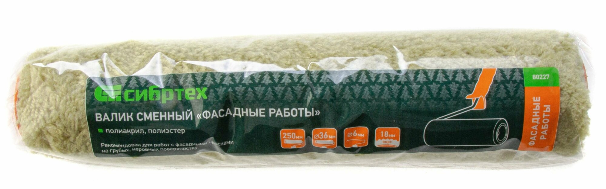 Валик сменный "Фасадные работы", 250 мм, ворс 18 мм, D 36 мм, D ручки 6 мм, полиакрил, полиэстер Сибртех интересное: