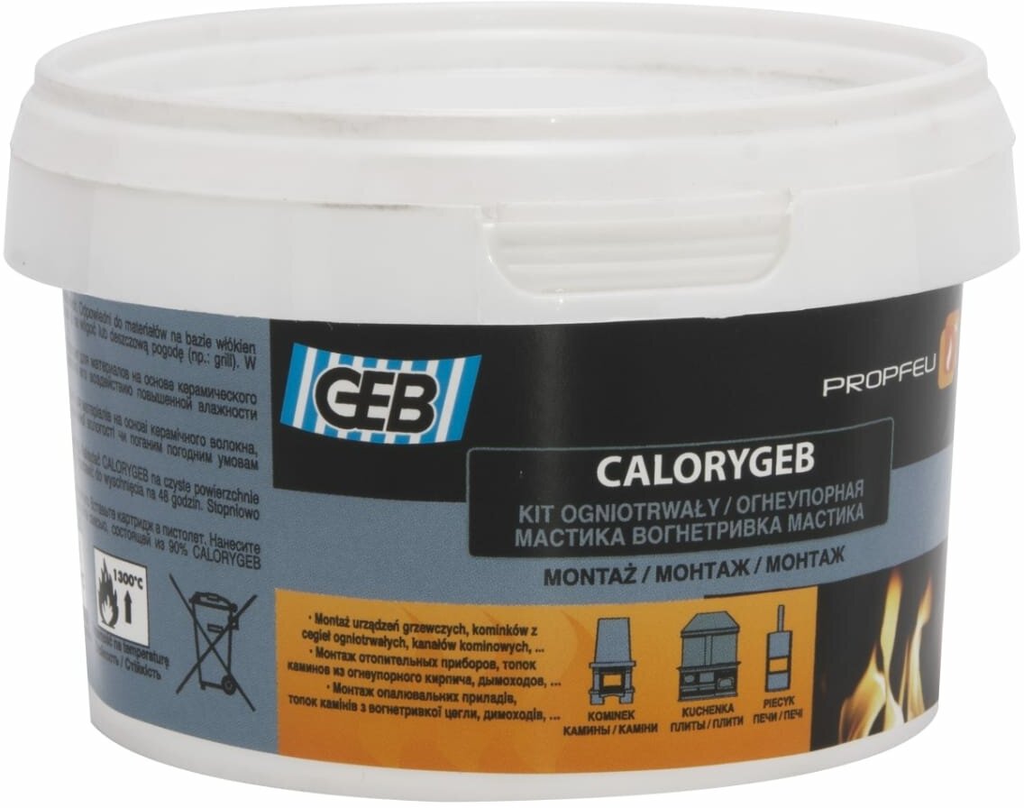 Мастика огнеупорная для камина и печи CALORYGEB, банка 300 г, для дымохода, заделки трещин