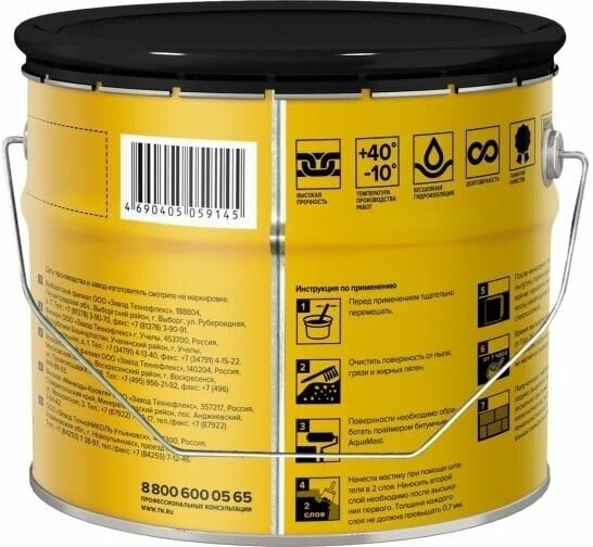 Мастика гидроизоляционная битумная для фундамента Технониколь AquaMast (3 кг) интересное: