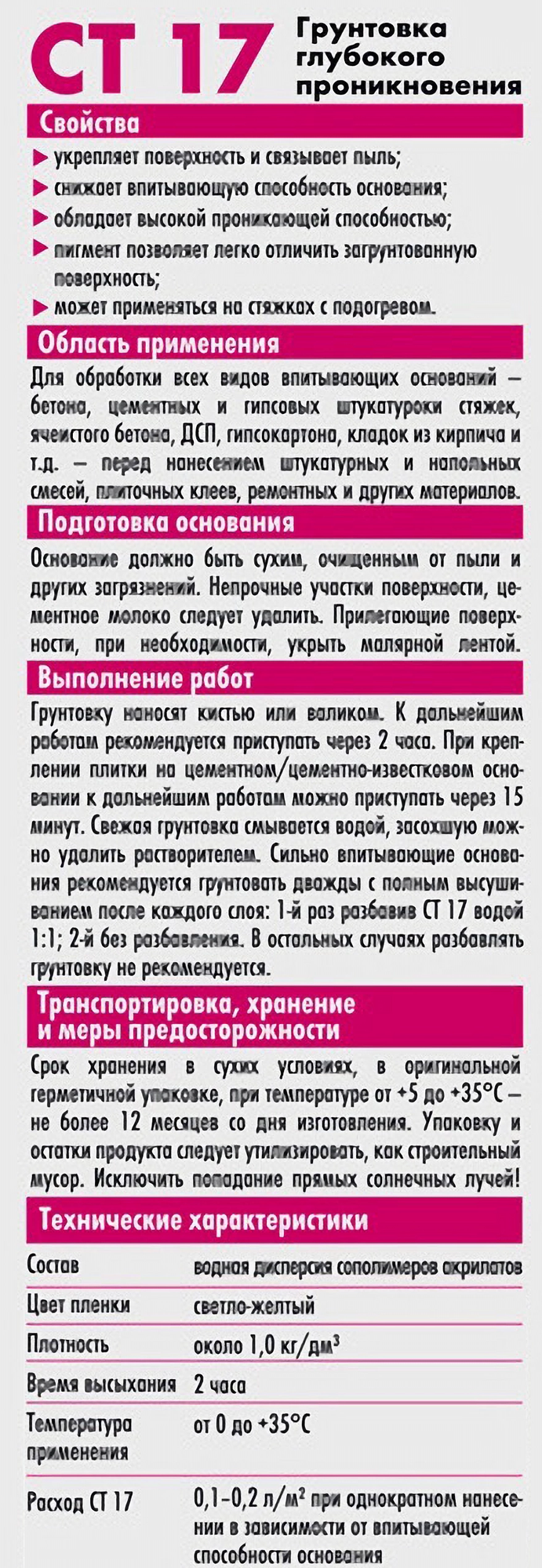 | Свойства | глубокого проникновения / укрепляющая / универсальная |