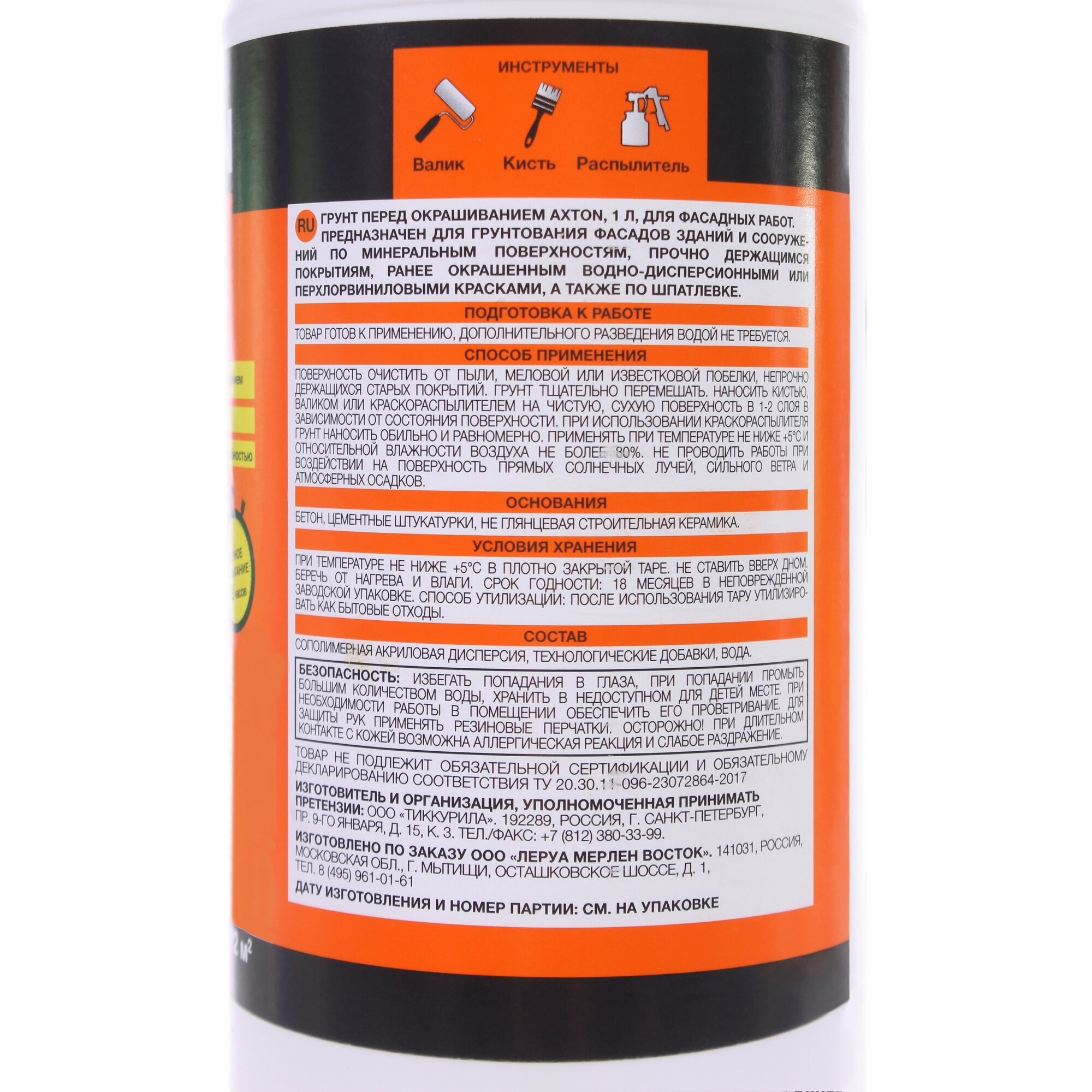 | Дополнительная информация | Грунтовка фасадная акриловая Axton 1 л |