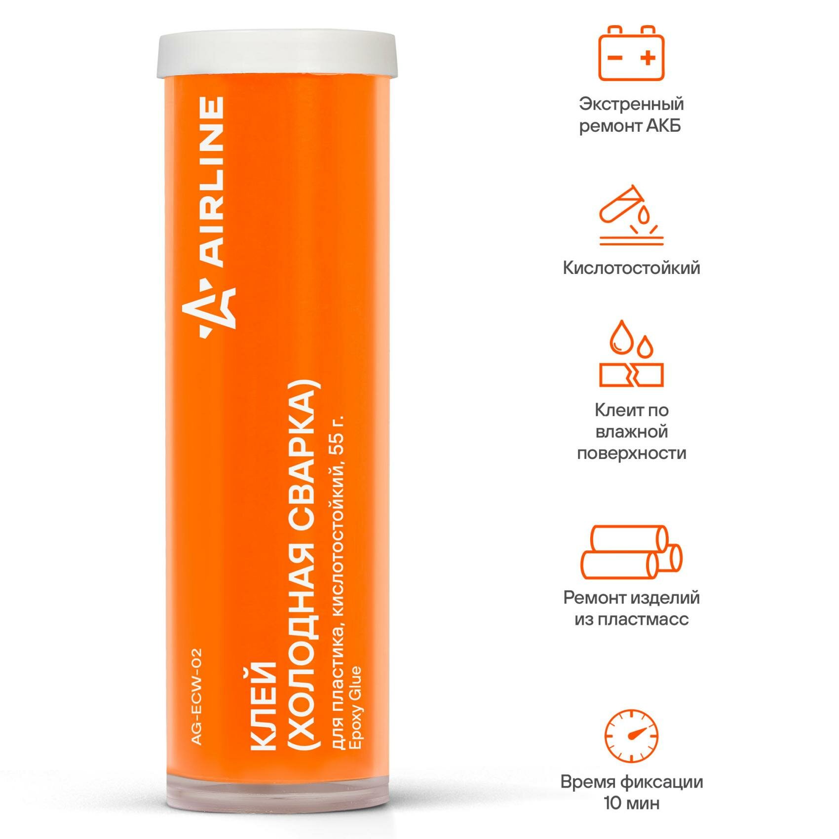 Купить AGECW02 AIRLINE Клей (холодная сварка) для пластика кислотостойкий 55 гр. (AG-ECW-02)