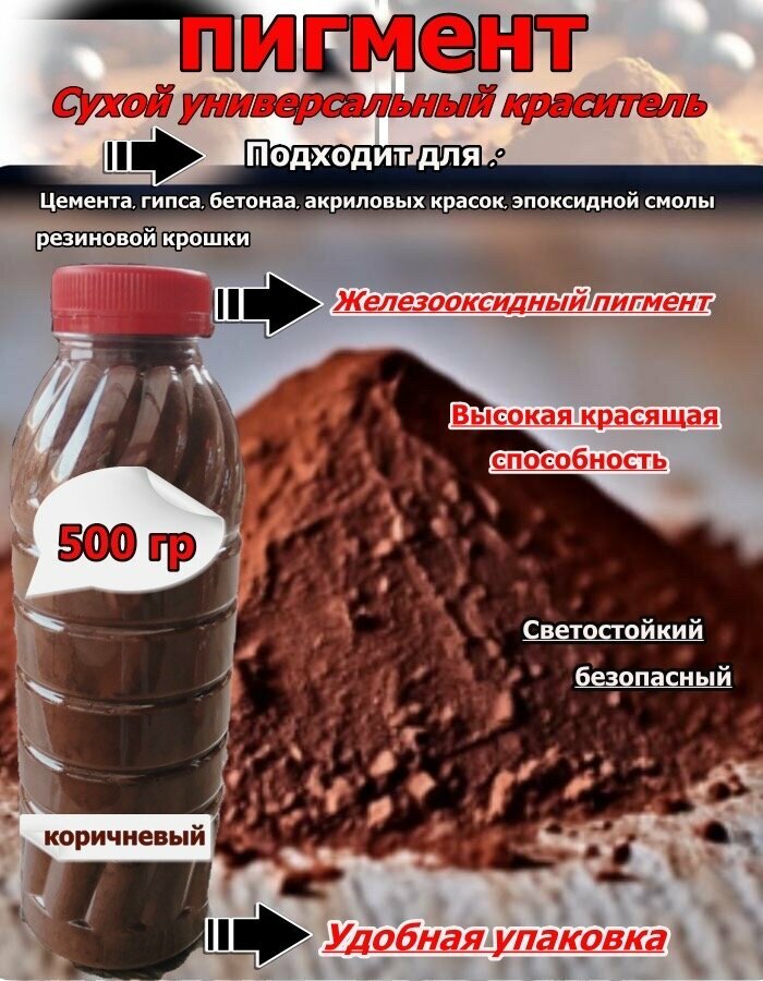 Пигмент железооксидный коричневый 0,5 литров добавка в раствор сухая интересное: