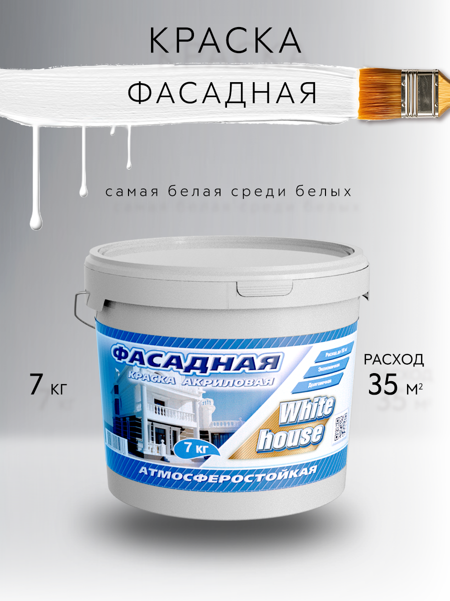 Краска фасадная White House , атмосферостойкая белая, 7 кг интересное: