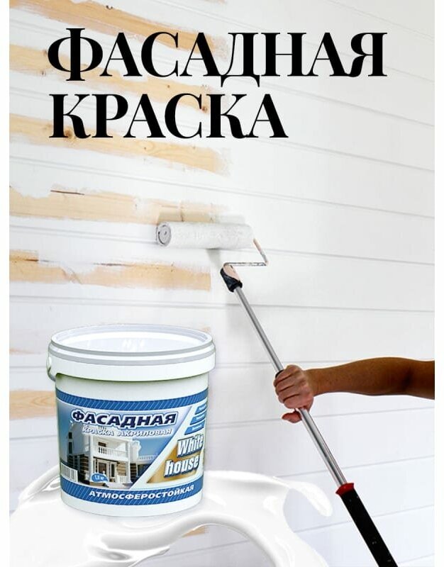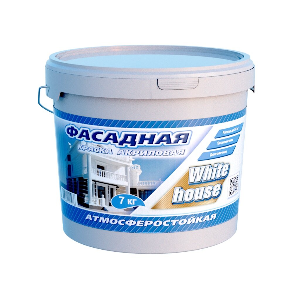 Краска фасадная влагостойкая моющаяся White House, супербелая, 1,5 кг