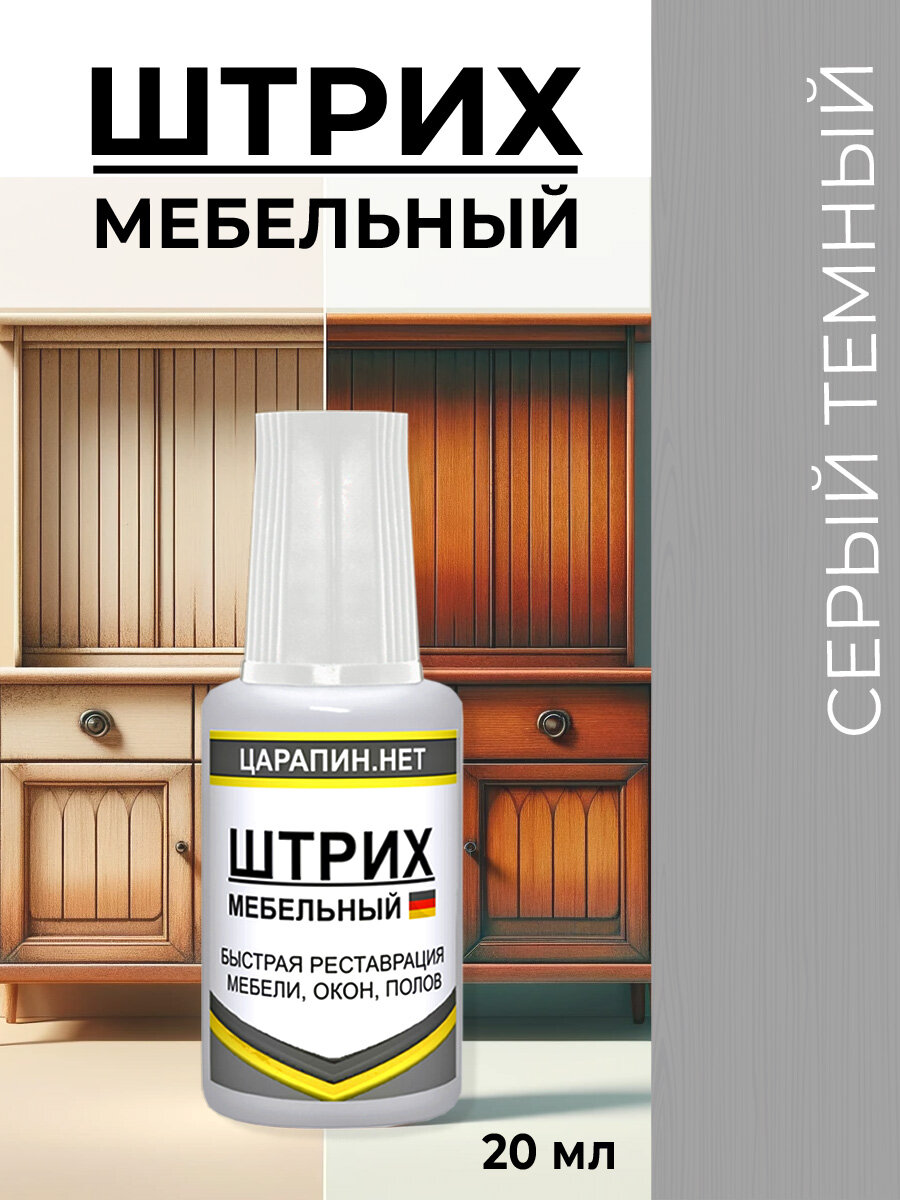 Штрих мебельный серый, для ламината, дерева, пластика. Матовый, 20 мл