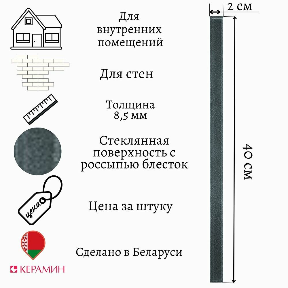Бордюр для плитки стеклянный Фреш 8 40х2 см (1 шт)
