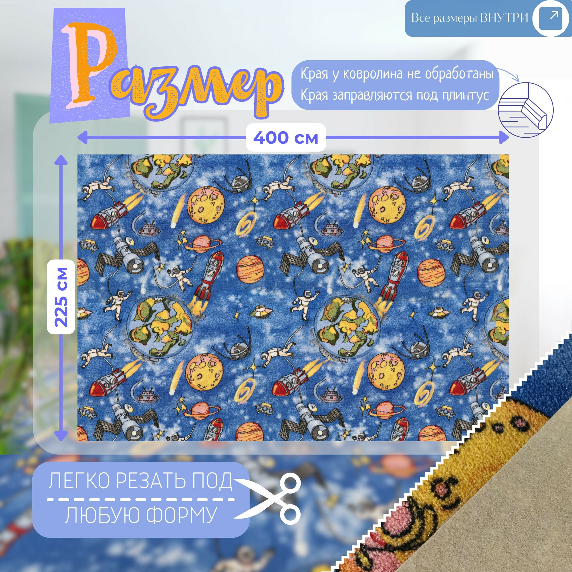 СохранитьДетский ковролин 4х2,25 м, "Космос", синий без оверлока интересное: