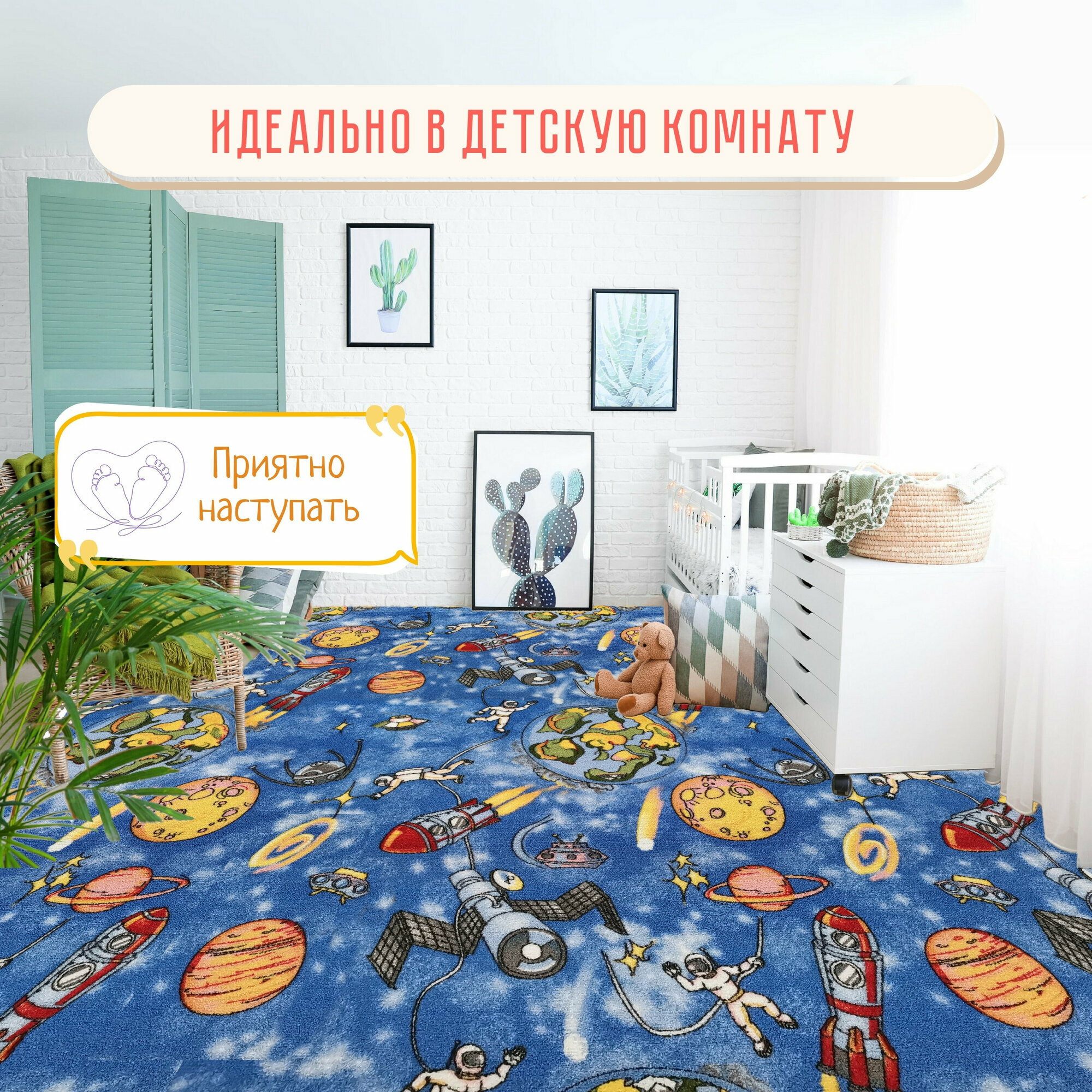 Купить Детский ковролин 4х2,5 м, "Космос", синий без оверлока