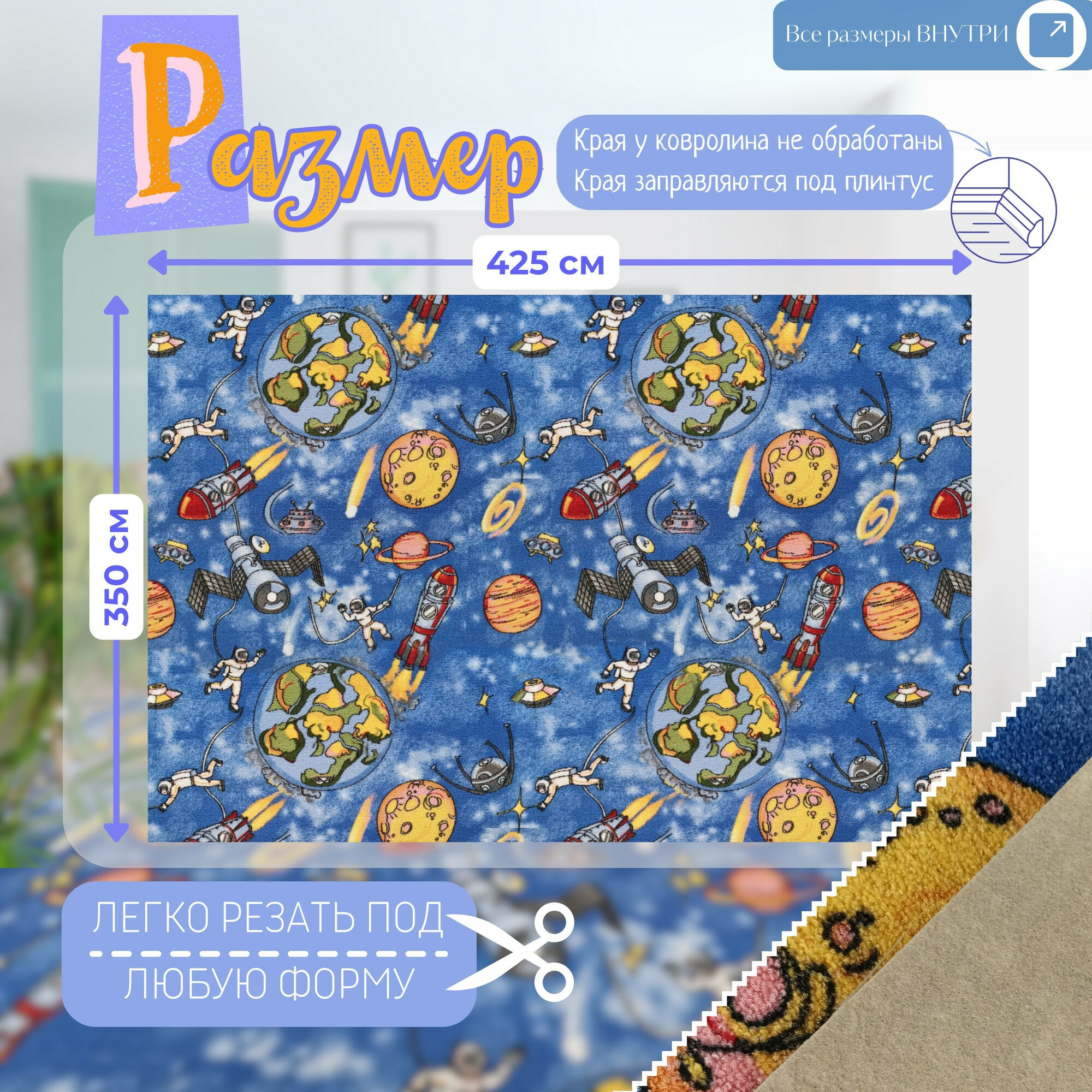 СохранитьДетский ковролин 3,5х4,25 м, "Космос", синий без оверлока интересное: