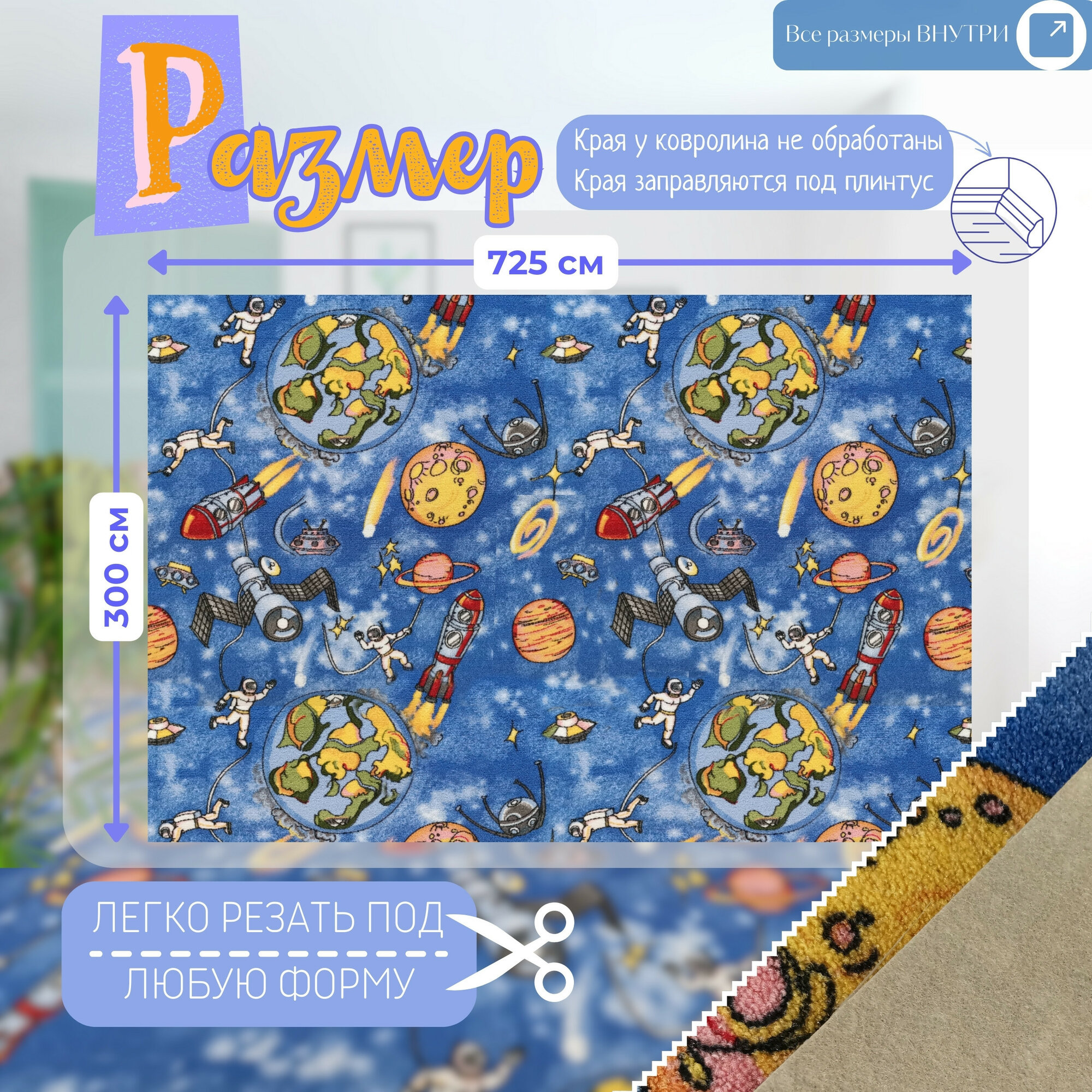 СохранитьДетский ковролин 3х7,25 м, "Космос", синий без оверлока интересное: