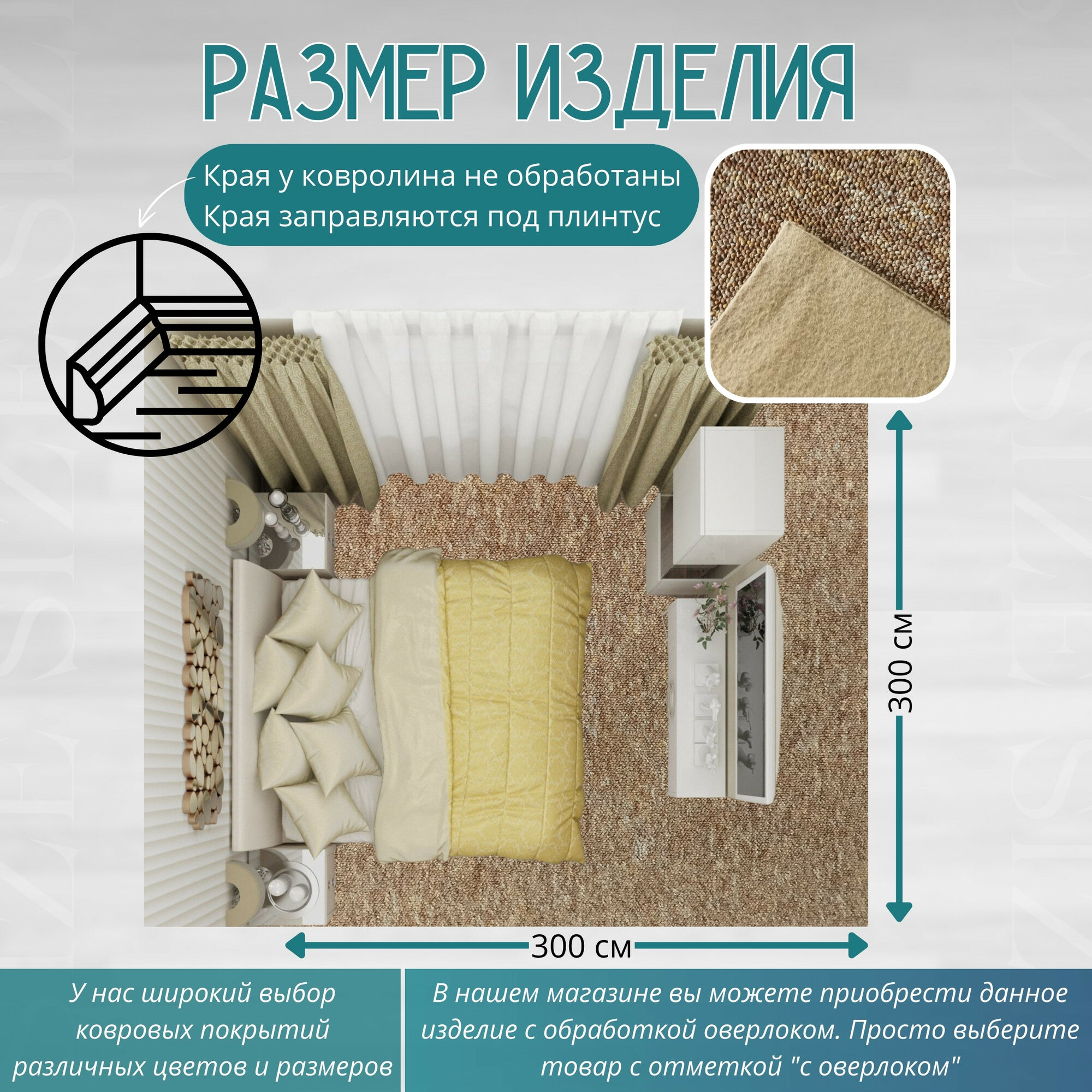 СохранитьКовролин метражом 3х3 м, петлевой "TURBO" бежевый, без оверлока интересное: