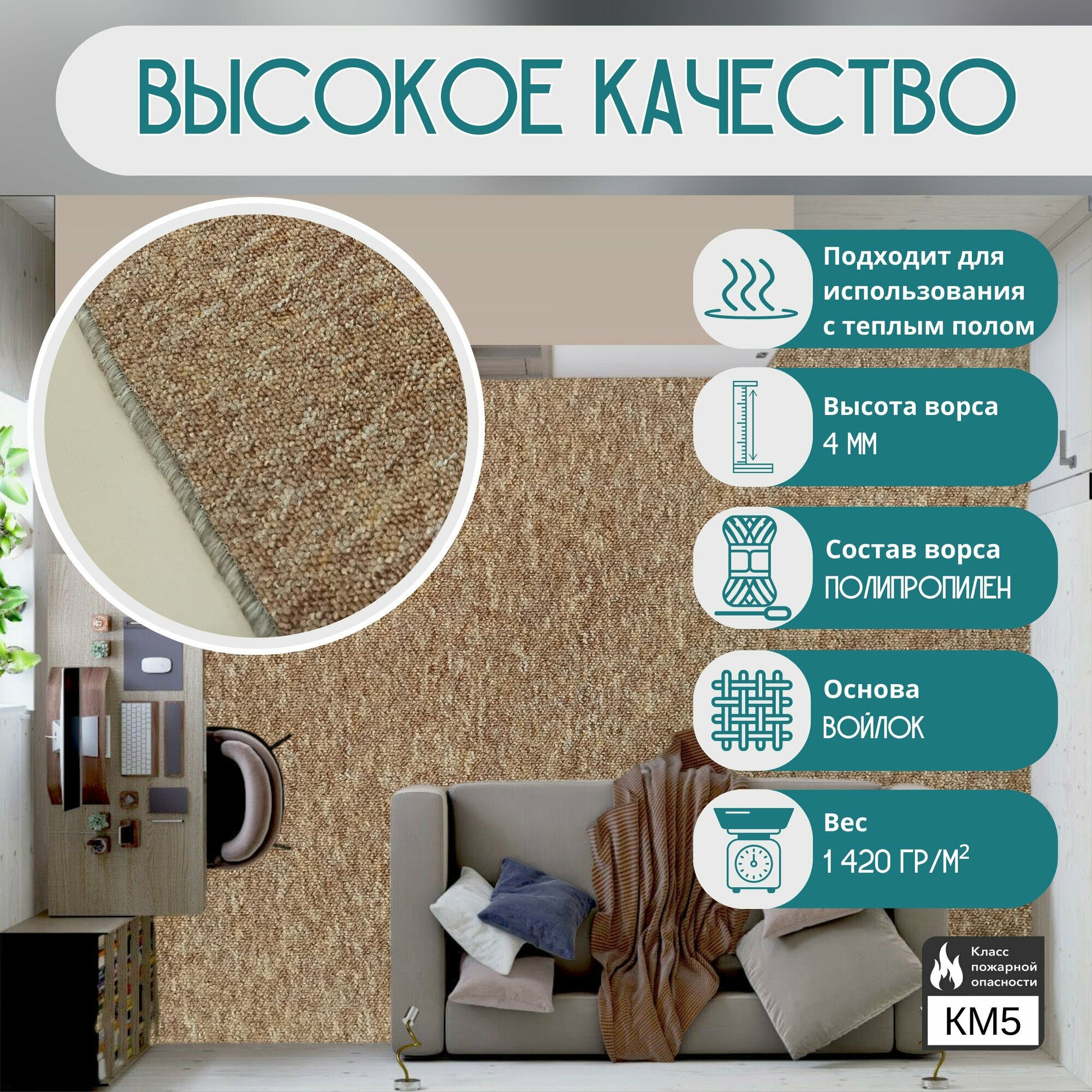 Ковролин метражом 2,5х4,5 м, петлевой "TURBO" бежевый, с оверлоком
