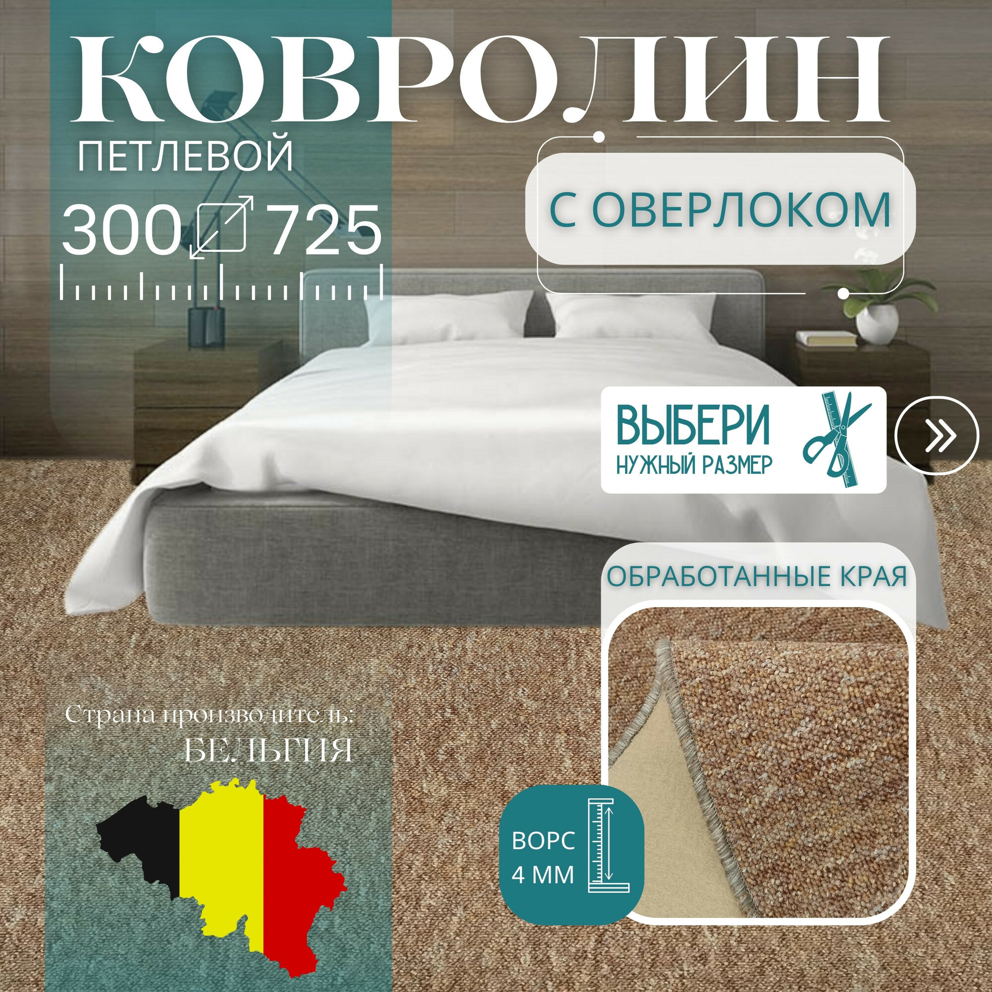 СохранитьКовролин метражом 3х7,25 м, петлевой "TURBO" бежевый, с оверлоком интересное: