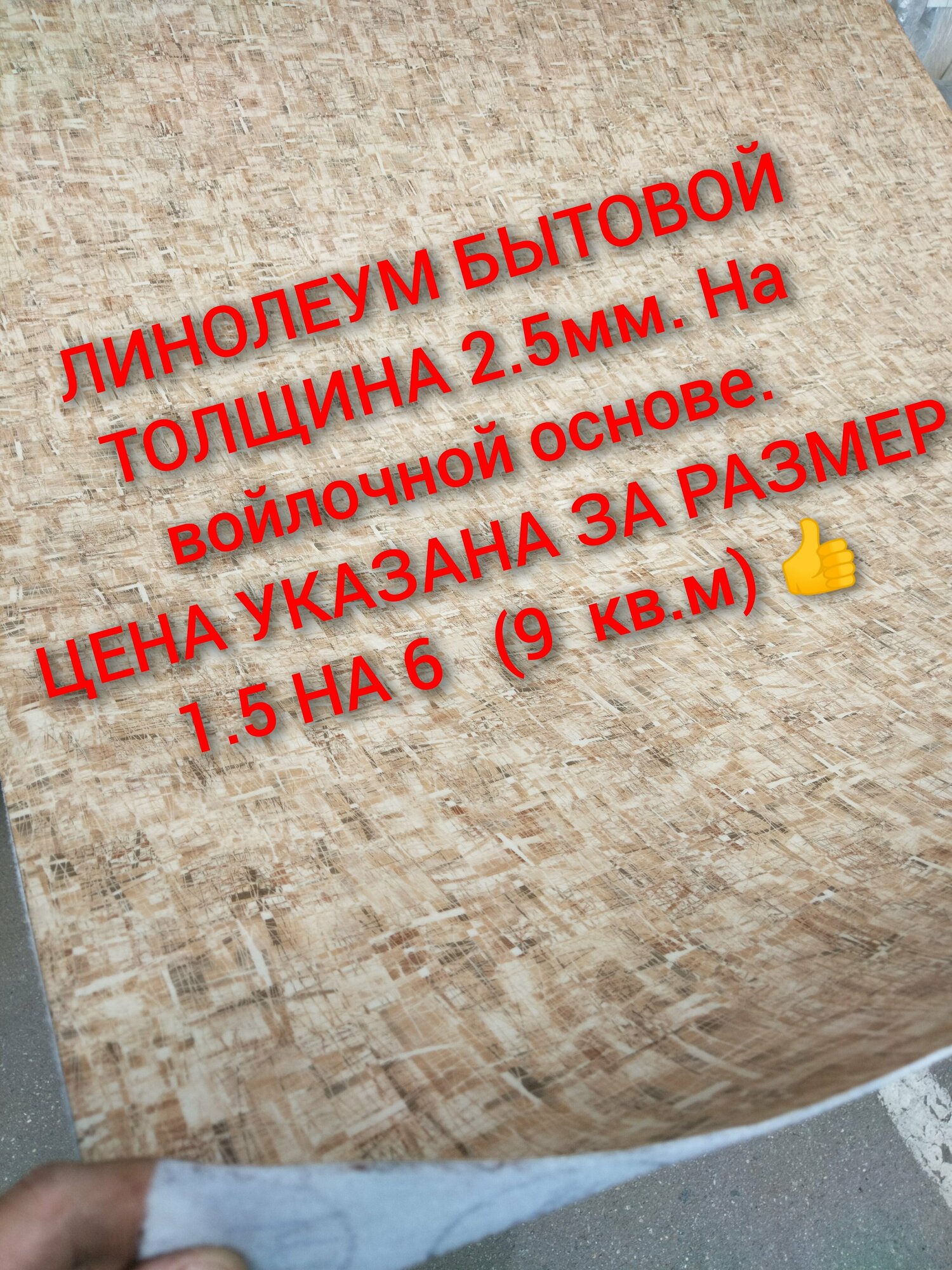 | Комплектация | Линолеум бытовой, 21 класс, толщина 2.5мм. На войлочной теплой основе (руками не порвать) Размер рулона: ширина 1.5 длина 4 (6кв.м.) |