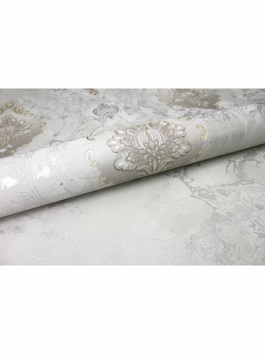 Обои для зала в классическом стиле белый,серебро