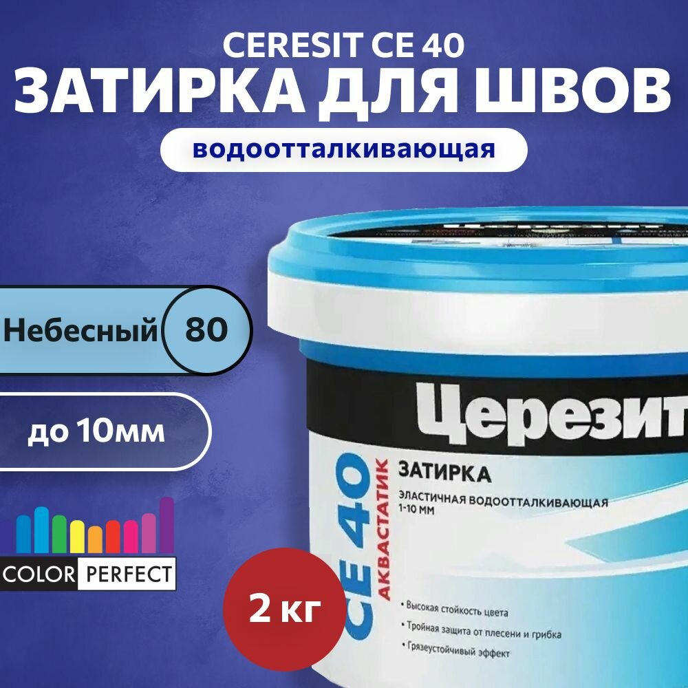 Купить Затирка для швов до 10 мм водоотталкивающая Ceresit CE 40 Aquastatic 80 небесный 2 кг