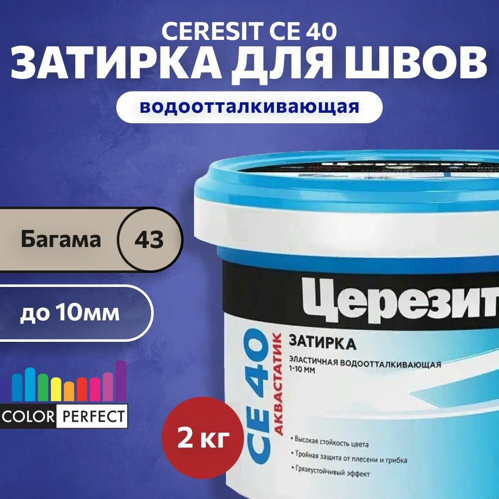 Купить Затирка для швов плитки до 10 мм Ceresit CE 40 Aquastatic 43 багама бежевый 2 кг