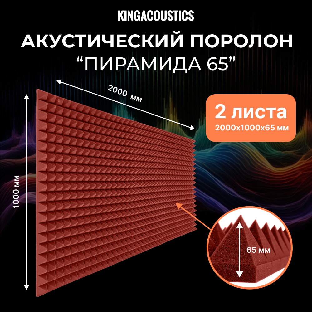 Купить Акустический поролон Пирамида 65 / 2 листа 2000х1000х65мм красно-коричневого цвета