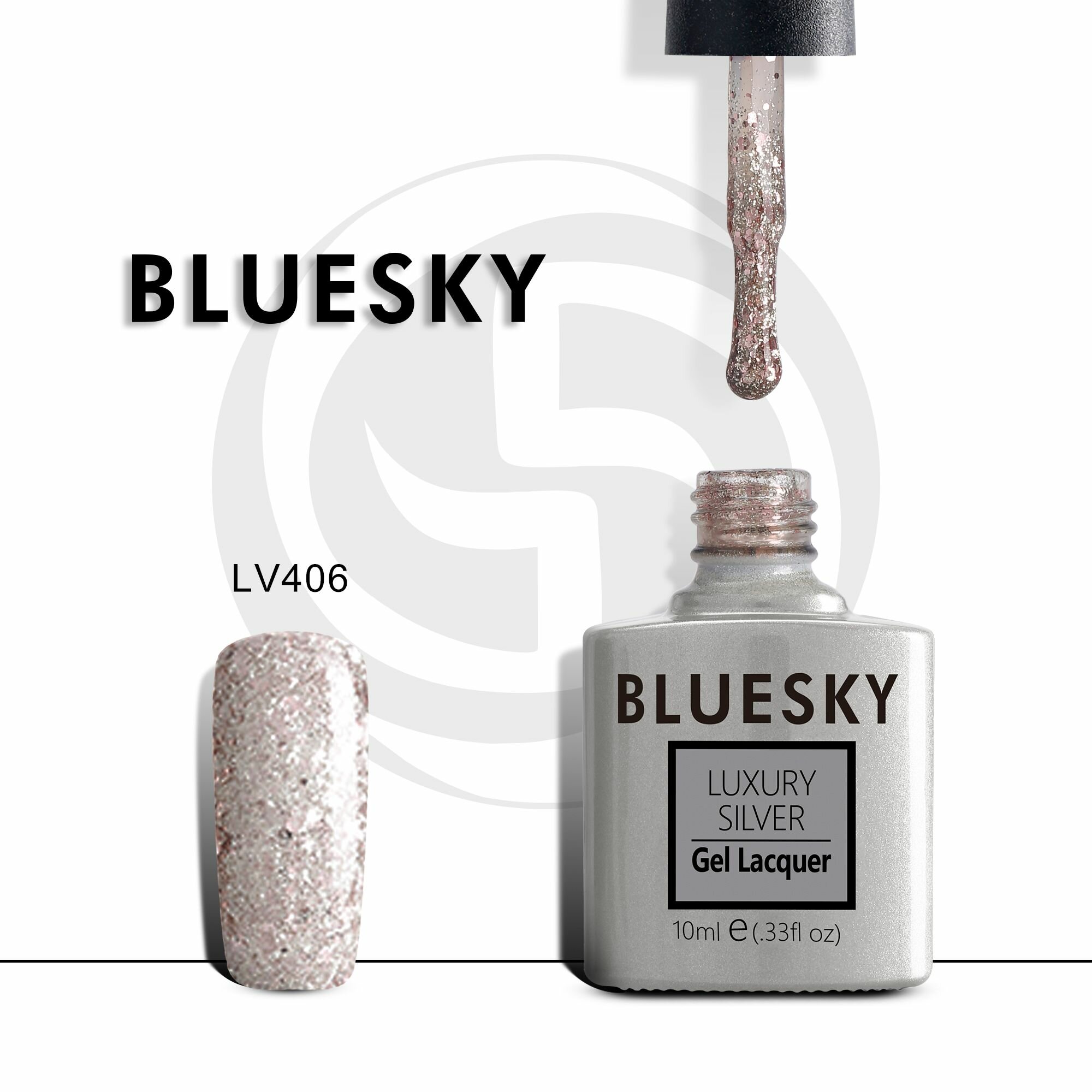 Купить Гель-лак №406 Luxury Silver 10 мл, BLUESKY