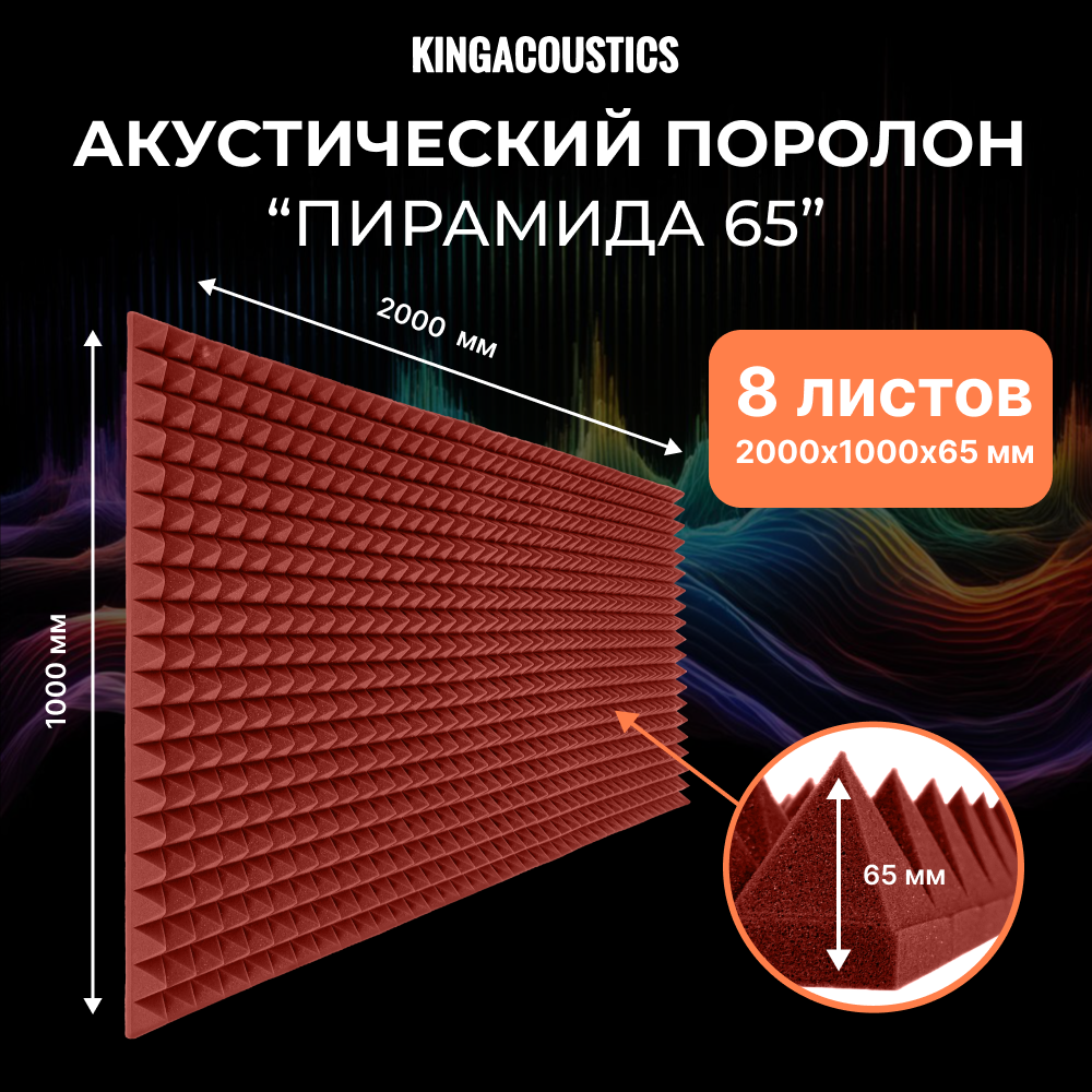 Купить Акустический поролон Пирамида 65 / 8 листов 2000х1000х65мм красно-кричневого цвета
