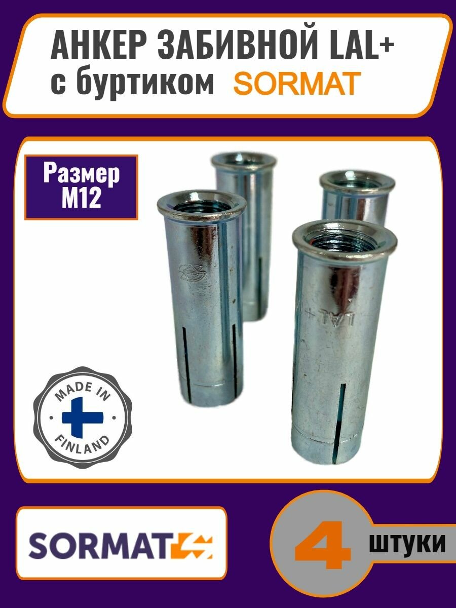 Анкер забивной LAL+ с буртиком М12, SORMAT, 4шт интересное: