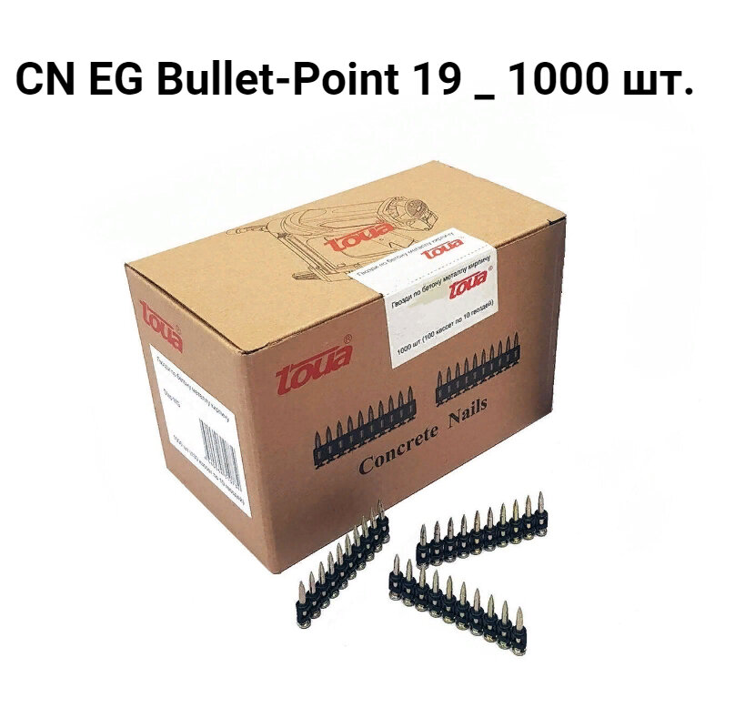 Купить Усиленные дюбель-гвозди по бетону, металлу Toua, тип CN EG Bullet-Point 19, 3.05х19, упаковка 1000 шт.