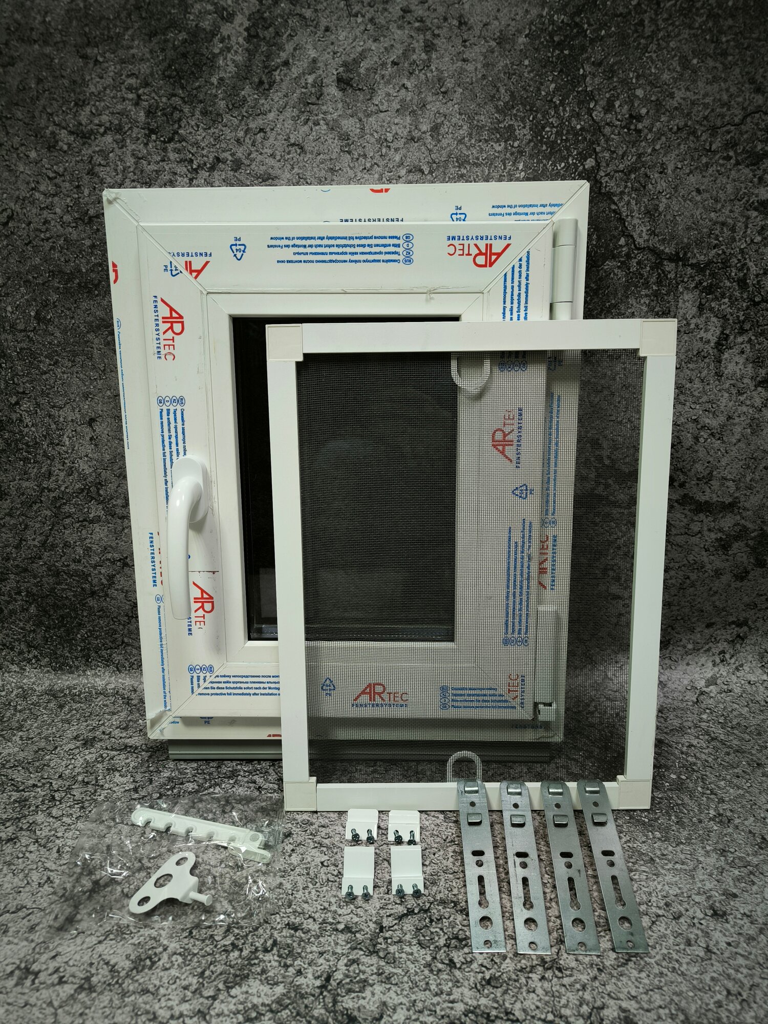 Окно 400*500 с сеткой, открывание вправо, стеклопакет расширенный . Гребёнка проветривания и монтажные пластины в подарок. интересное: