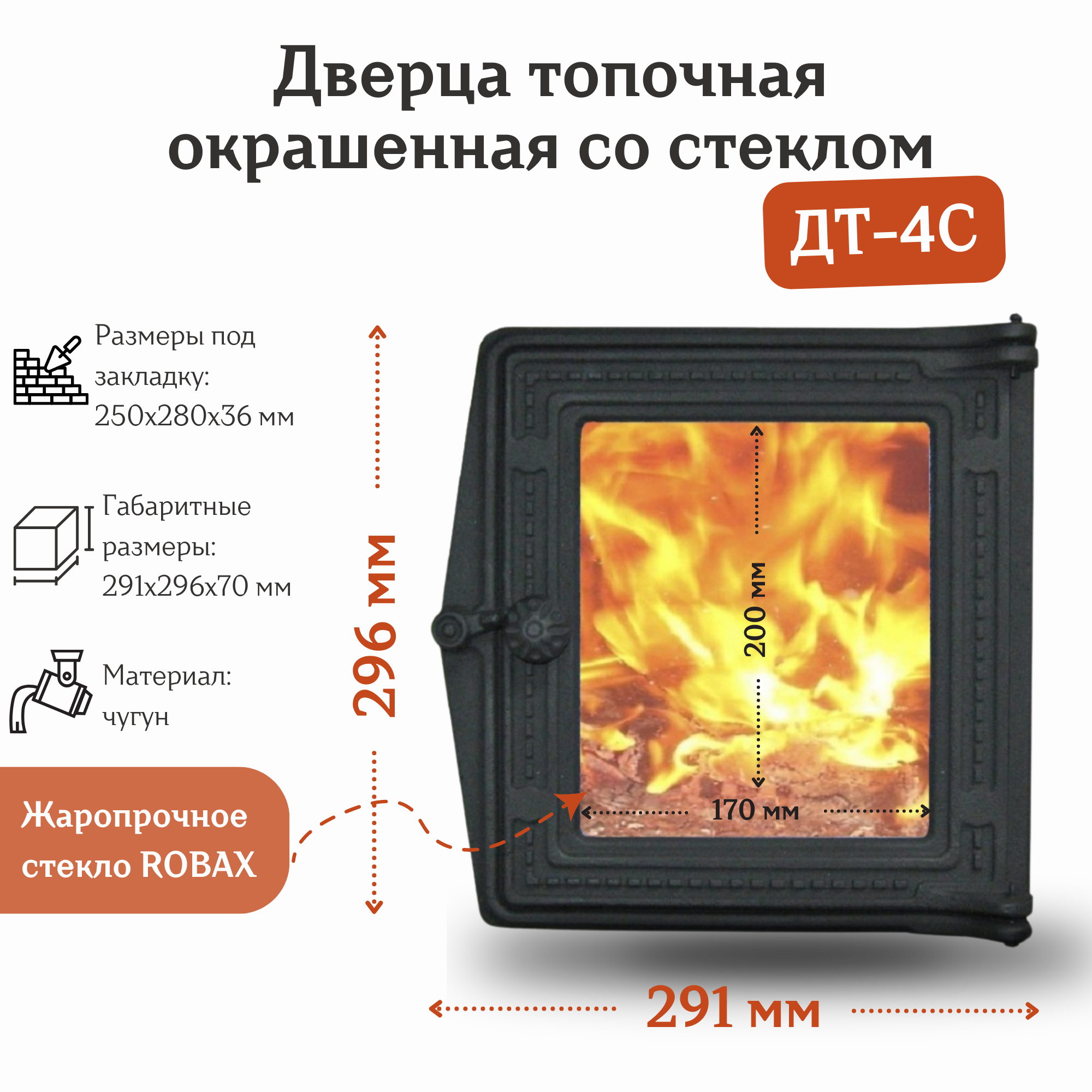 Дверца топочная со стеклом ДТ-4С RLK 517 (291*296 мм) окрашенная интересное: