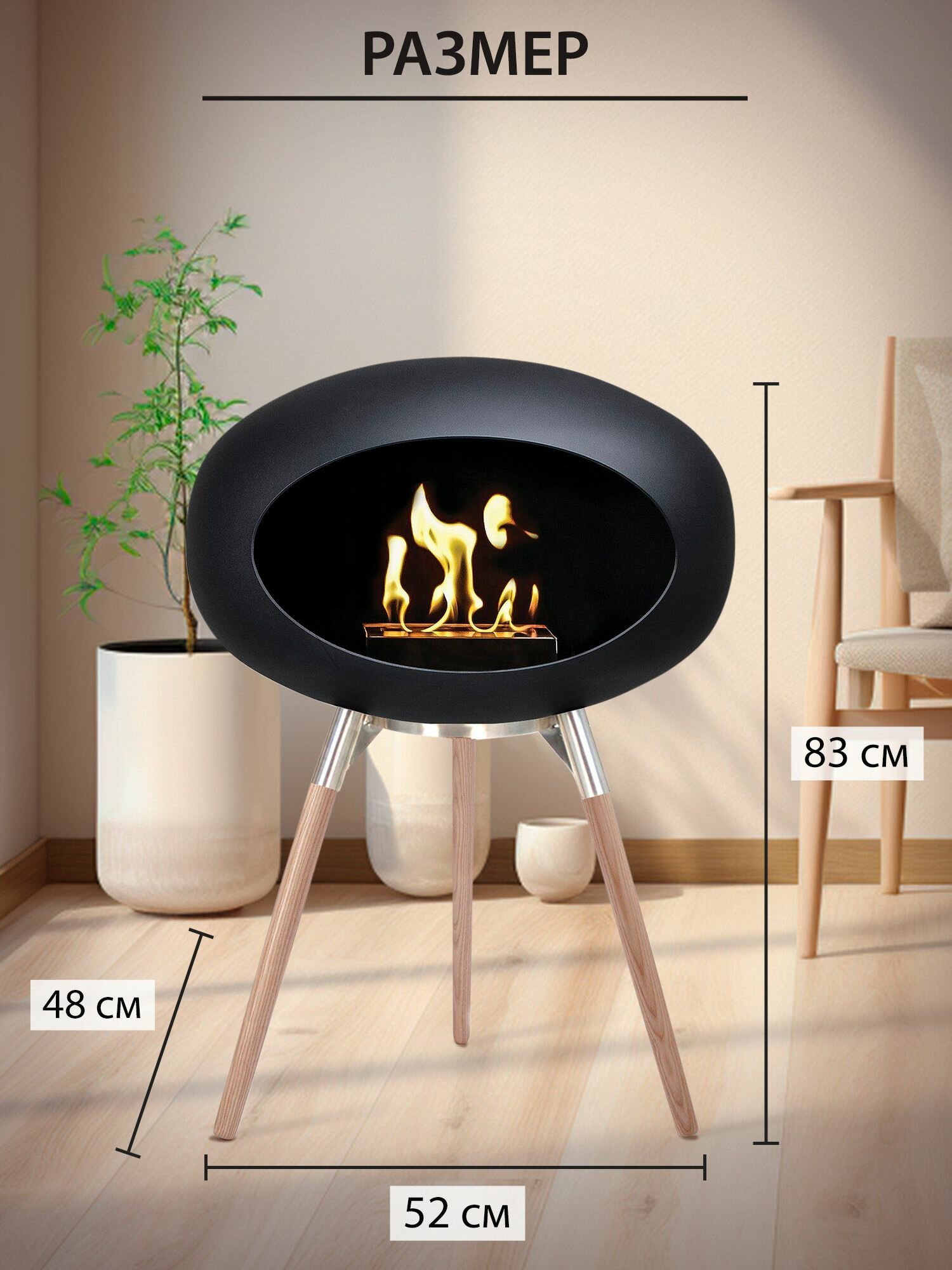 Купить Биокамин напольный, декоративный спиртовой био камин для дома и офиса, черный