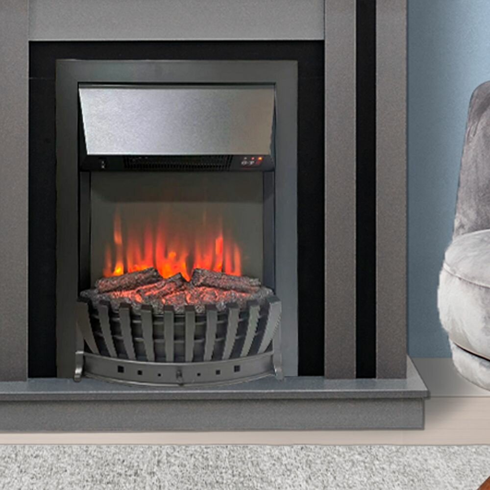 Камин электрический ELEKAM NEO серый с обогревом, пультом управления и потрескиванием дров (Электрокамин)