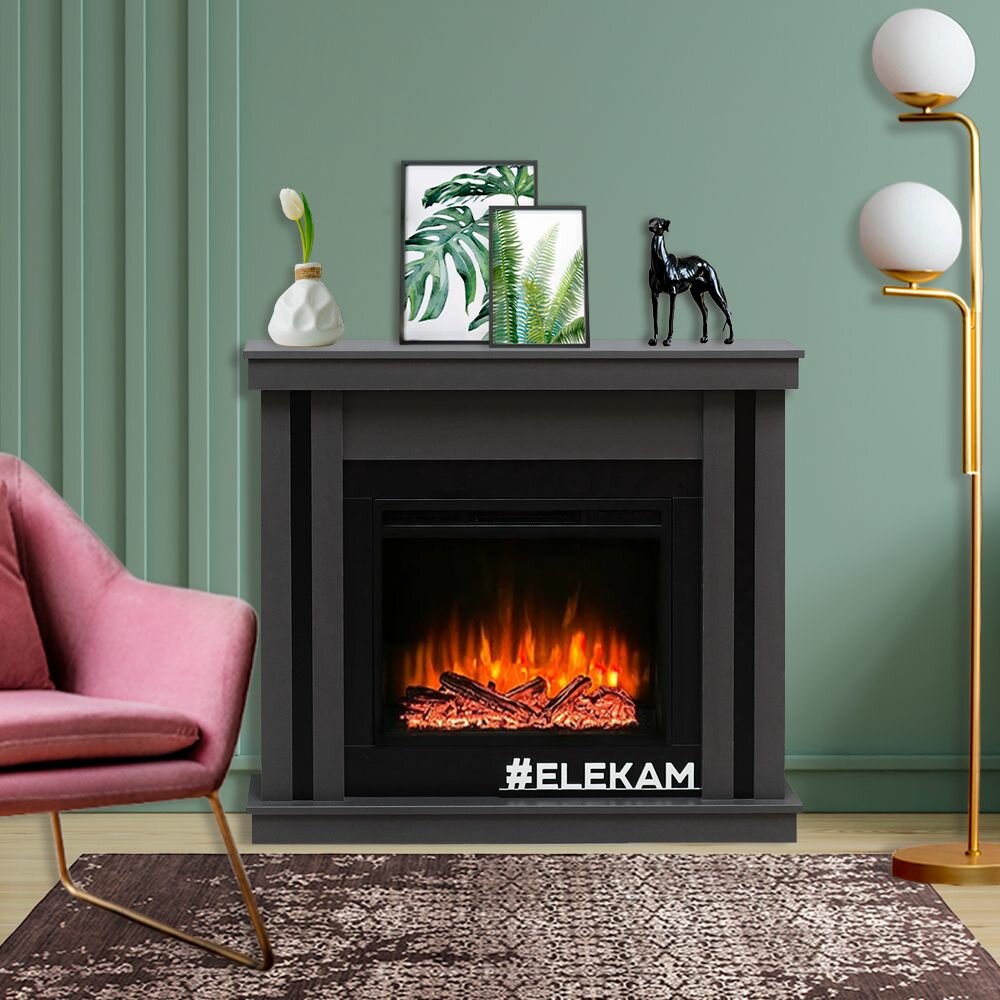 Купить Камин электрический ELEKAM NEO серый с обогревом, пультом управления и потрескиванием дров (Электрокамин)