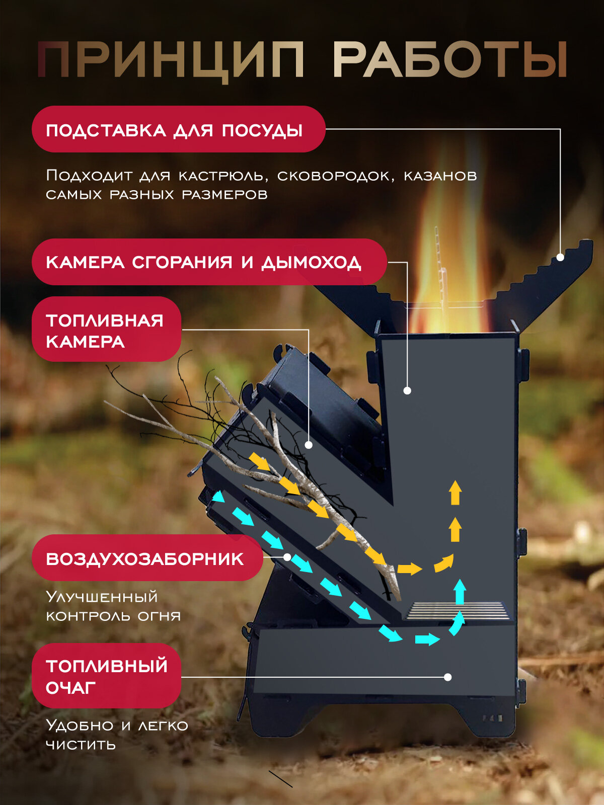 Печь ракетная разборная щепочница высота 50 см, сталь 2 мм интересное: