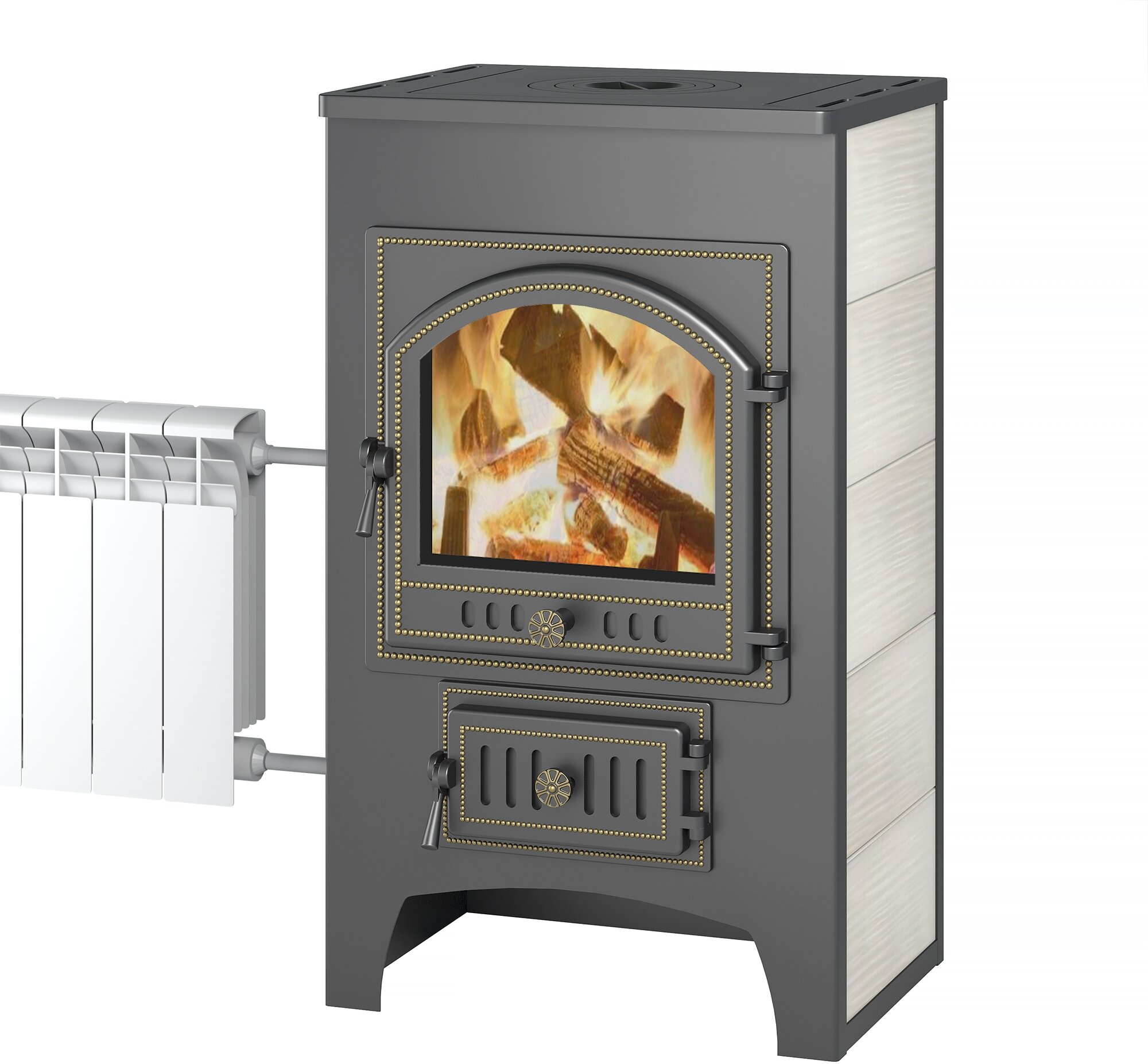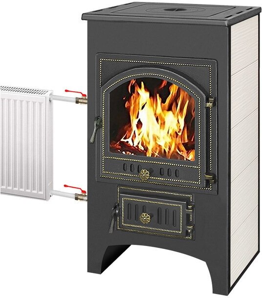 Купить Печь-Камин везувий ПК-01 (205) с плитой и теплообменником 12 кВт (бежевый)