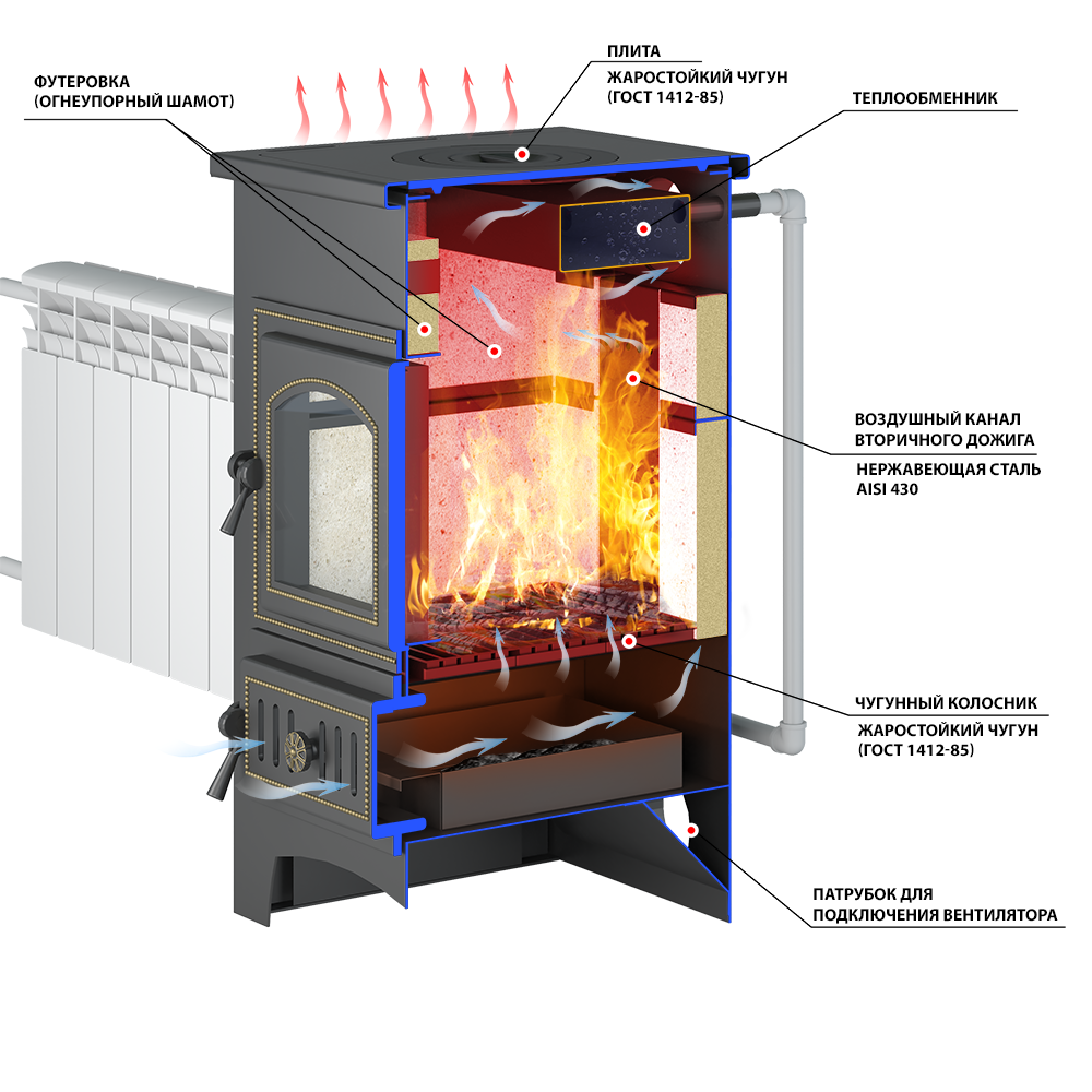 | Материал топки | чугун |