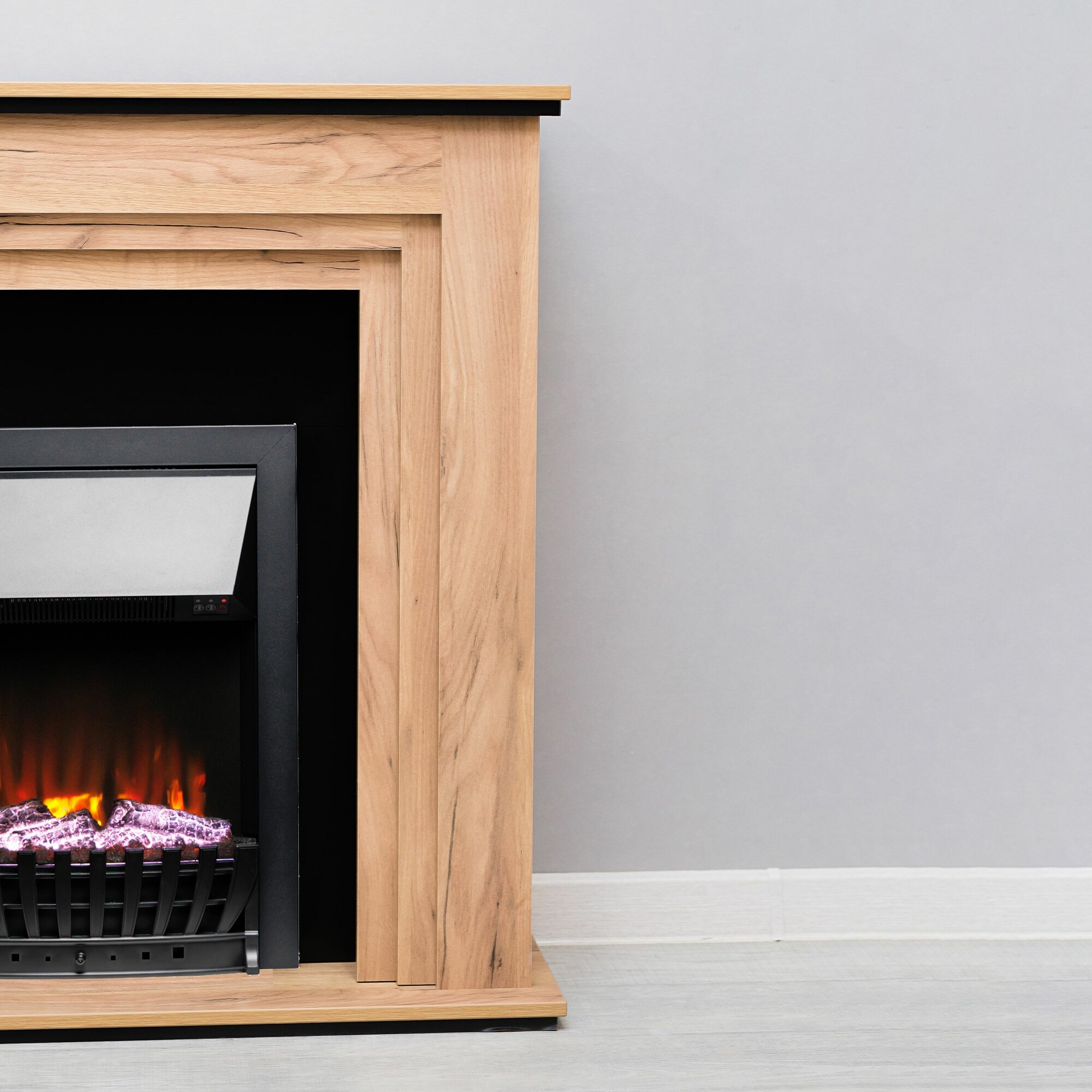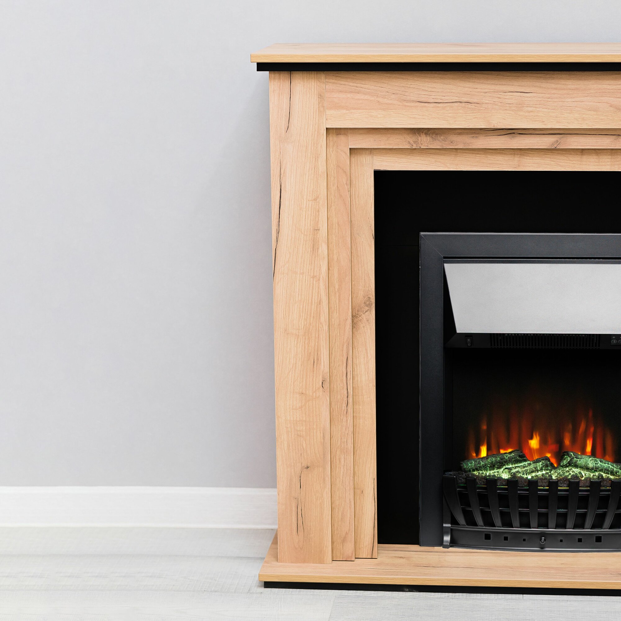 Камин электрический ELEKAM Silver дуб золотой с очагом Velar с пультом, обогревом и звуком потрескивания дров (Электрокамин)