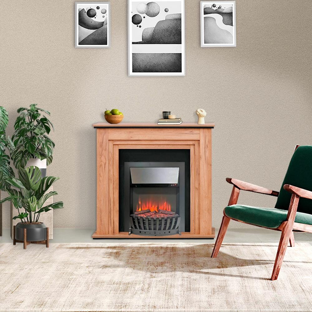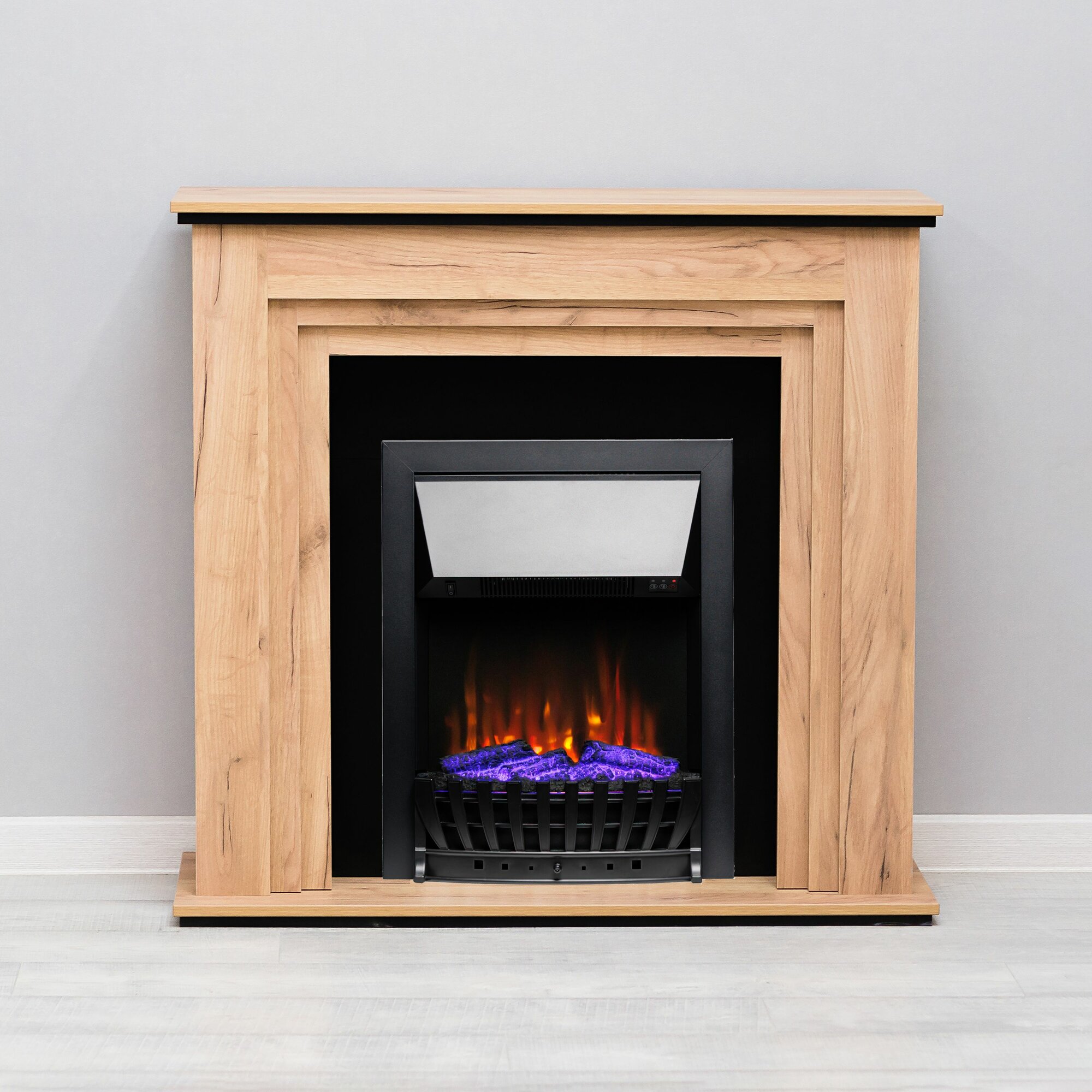 Камин электрический ELEKAM Silver дуб табачный с очагом Vegas с обогревом, пультом управления и потрескиванием дров