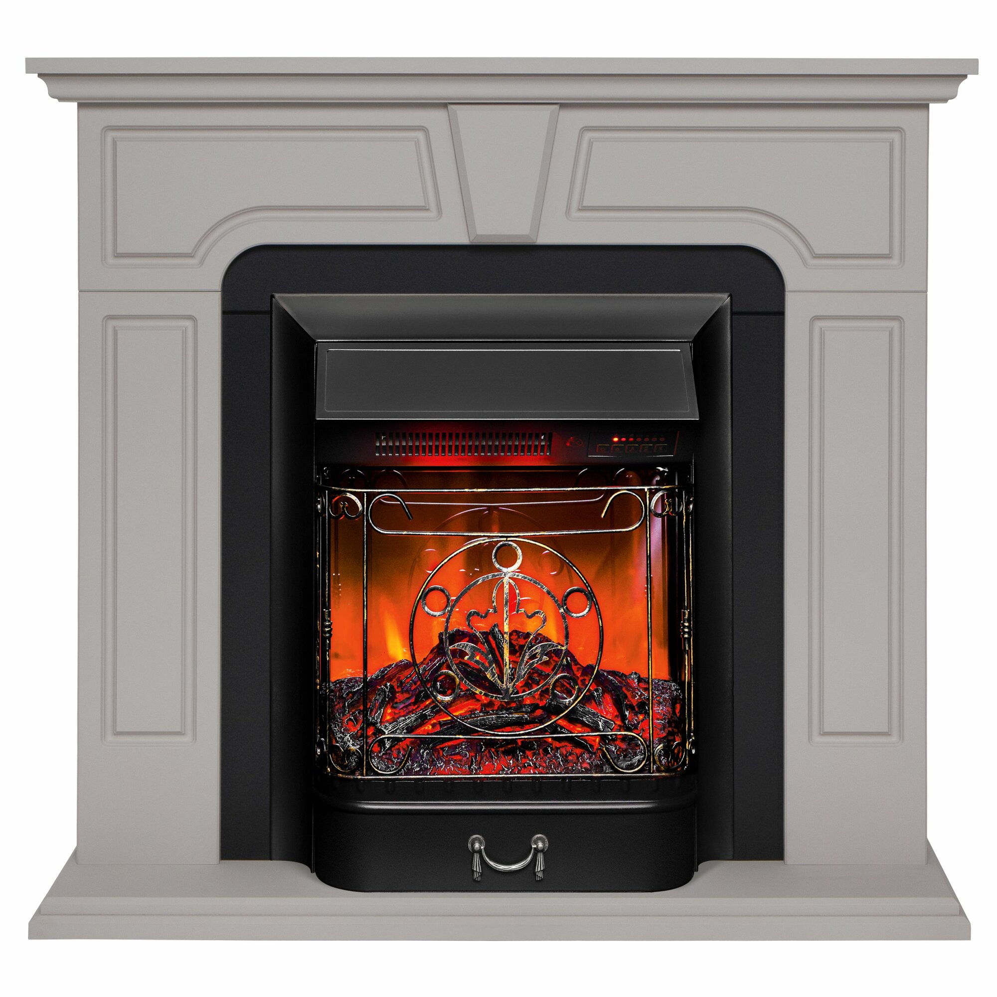 Электрокамин RealFlame Theodor серый МДФ с очагом 3D Olympic, имитация живого пламени 3D, увлажнение, пульт ДУ, обогрев