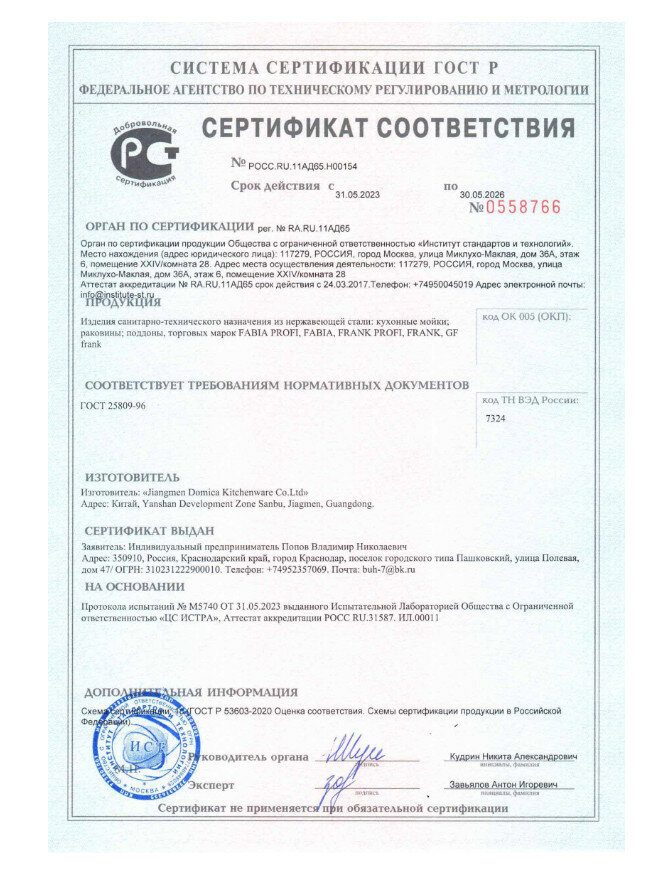 | Гарантийный срок | 5 лет, Гарантия не распространяется на механические повреждения, изменения конструкции. |