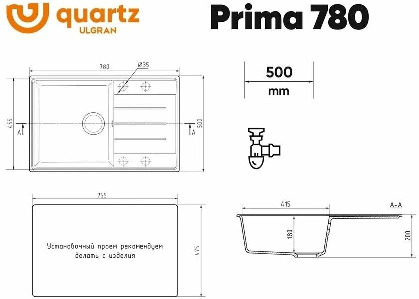 Мойка ULGRAN Quartz Prima 780-03, десерт