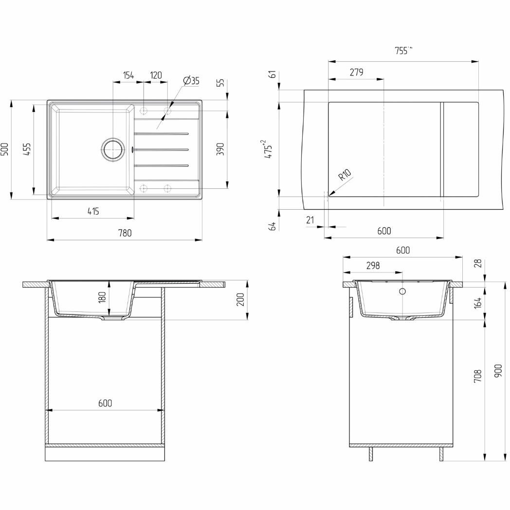 Врезная кухонная мойка LEX Maury 510