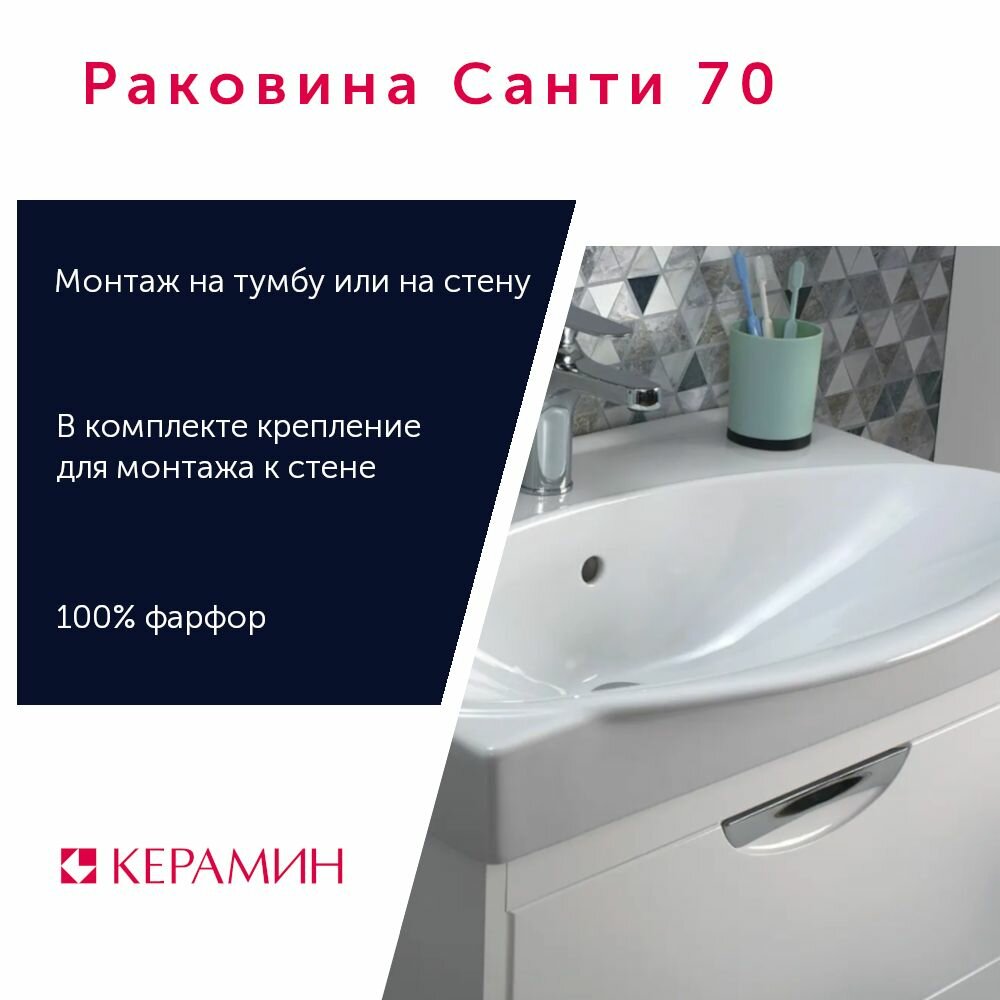 Мебельная раковина Санти 70 белый для ванной интересное:
