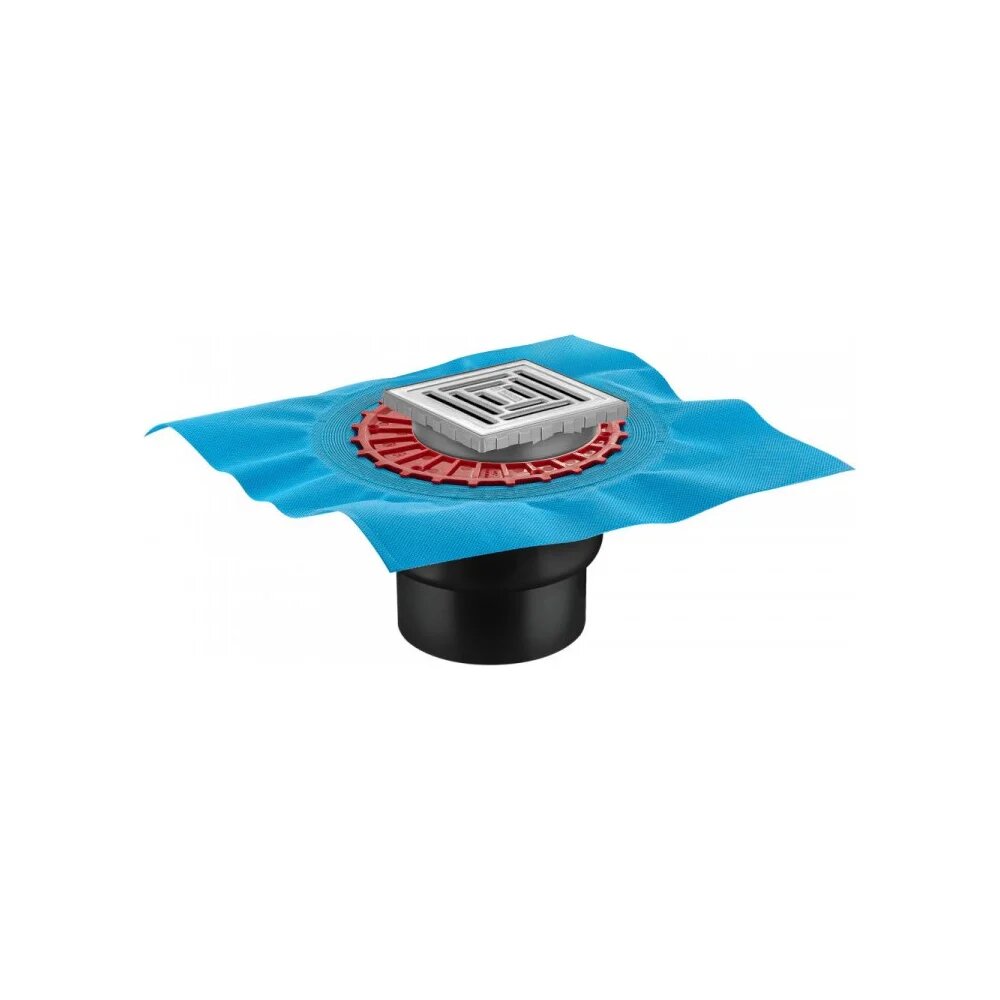Трап душевой BERGES ZENTRUM Uno 100х100, мат. хром, верт. выпуск слив D50/70/100, 090471