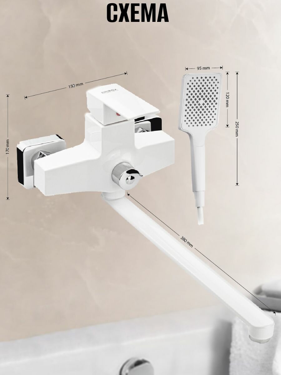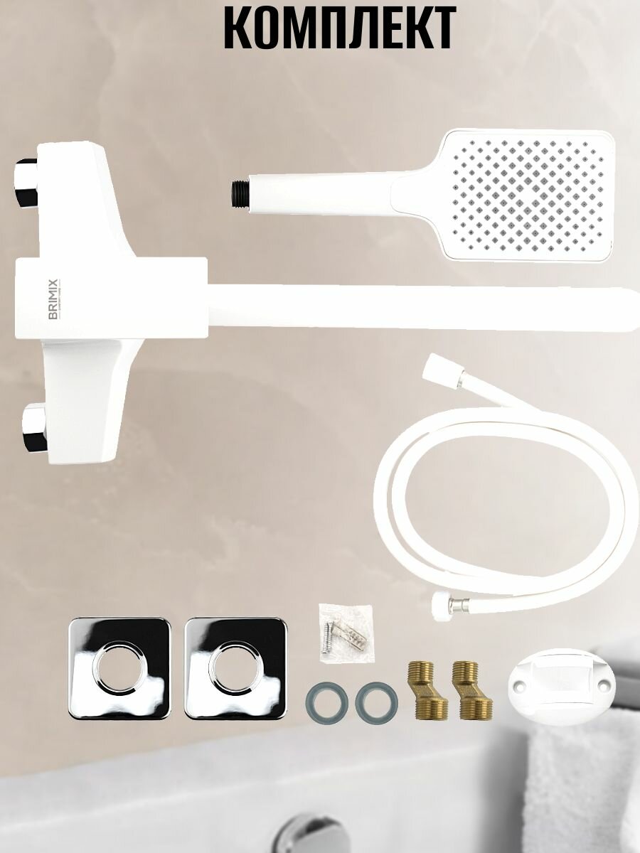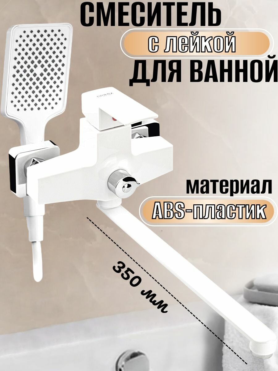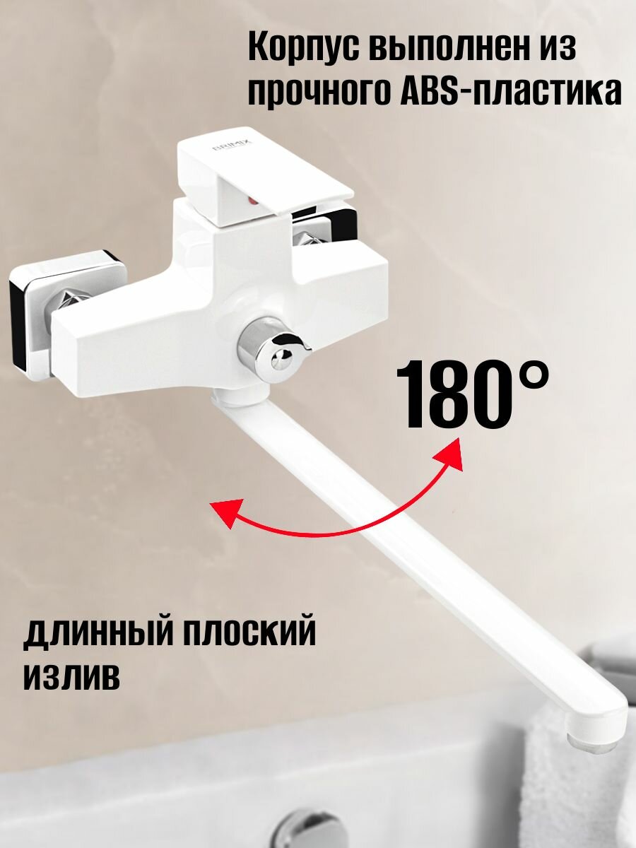 brimix 5563 смеситель в ванную, длинный излив, шаровый, из высокопрочного пластика абс, белый, квадратный корпус смеситель для ванны