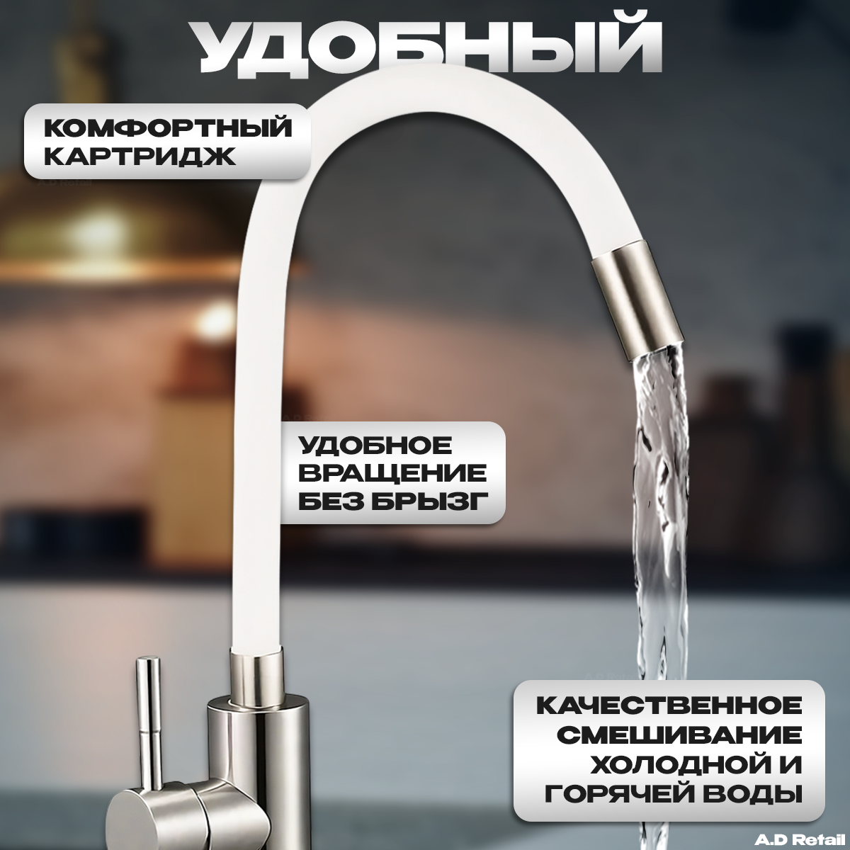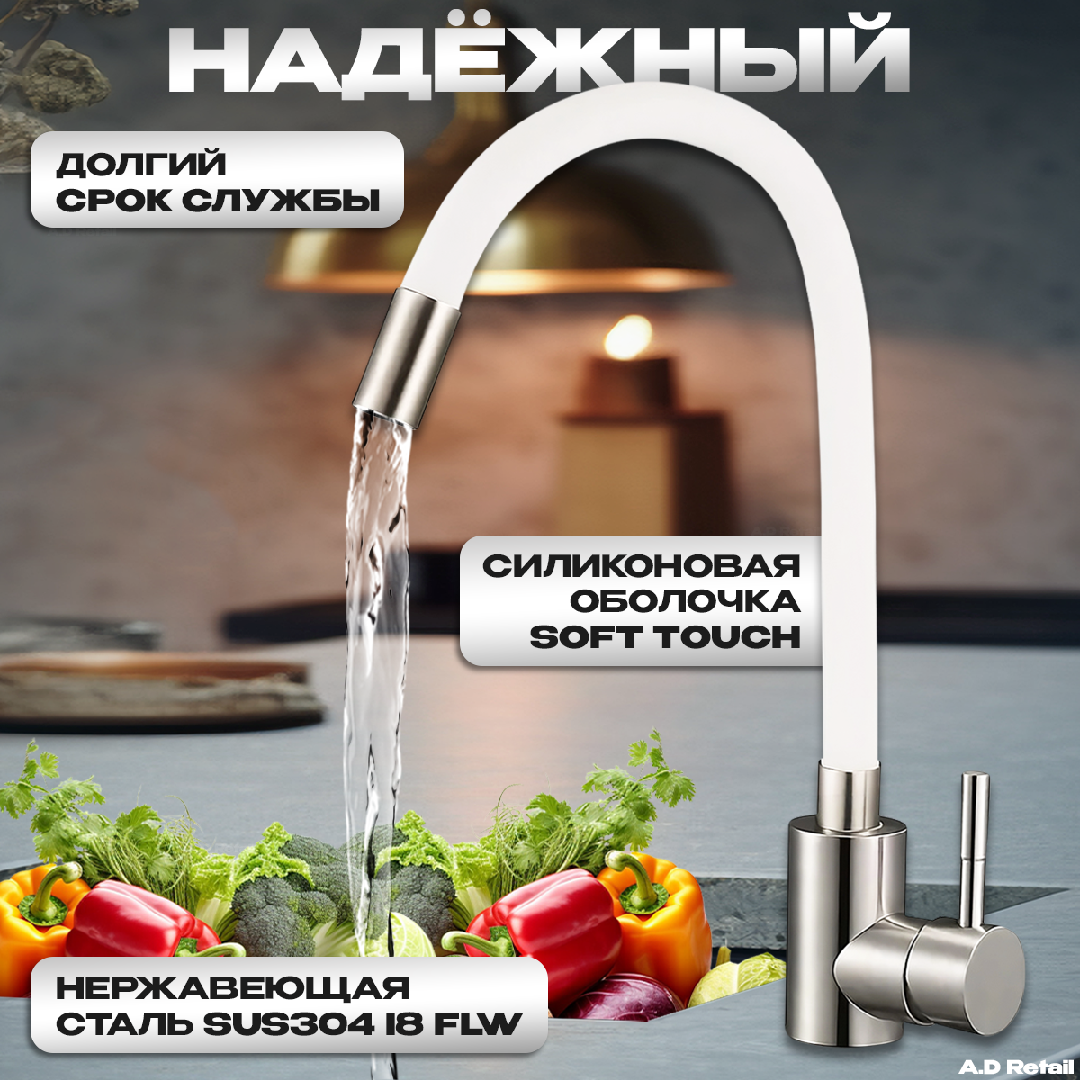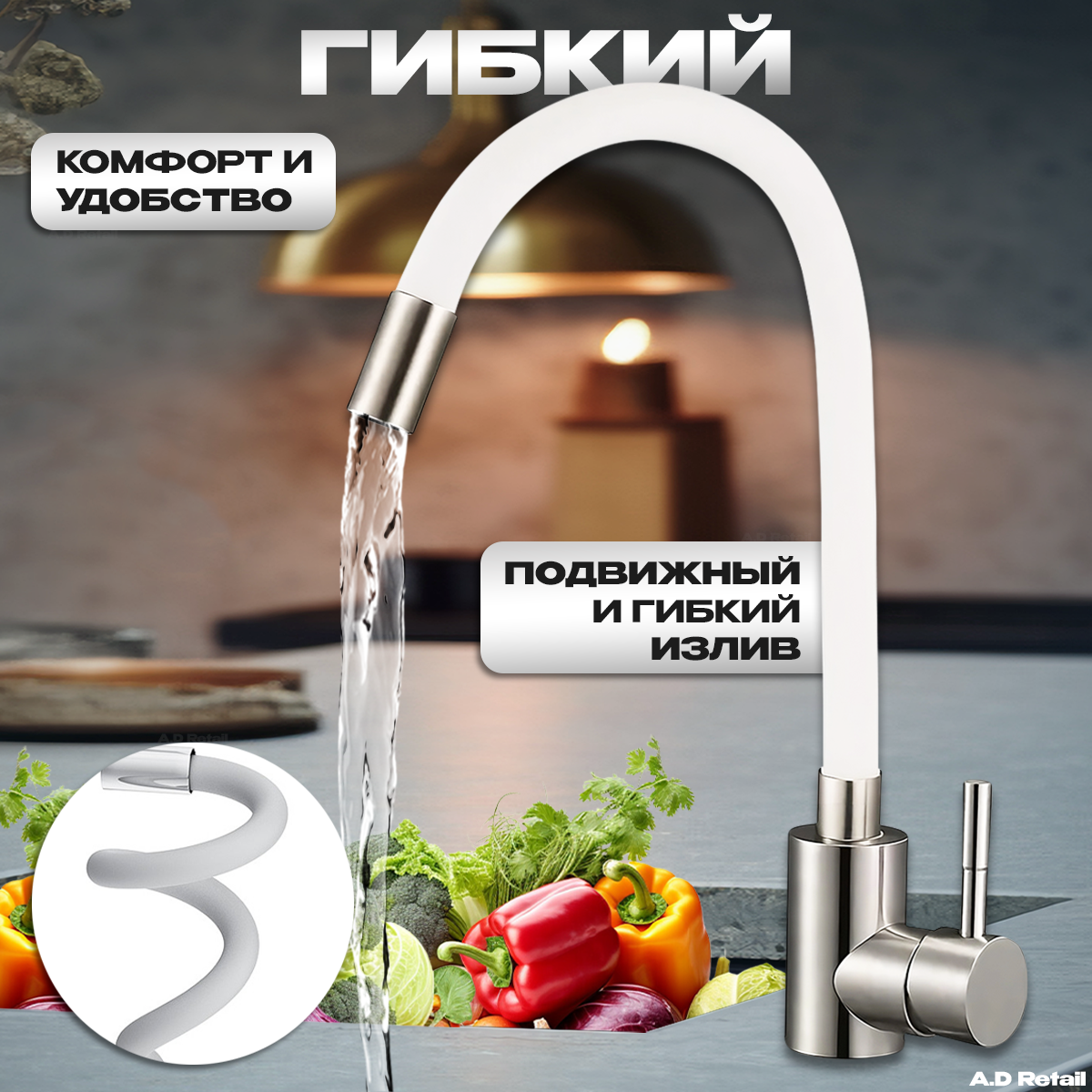 Смеситель для кухни из нержавеющей стали с гибким изливом интересное: