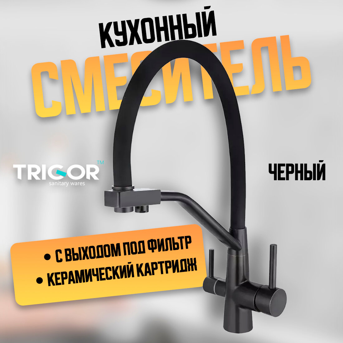 Смеситель (кран) для кухни с фильтром для питьевой воды, для раковины на кухню с гибким изливом, Trigor черный белый